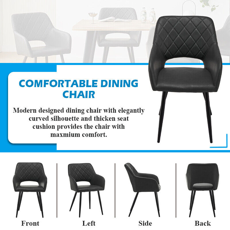 2 X Grey Faux Leather Dining Chairs Padded Cushion Diamond Chair Kitchen