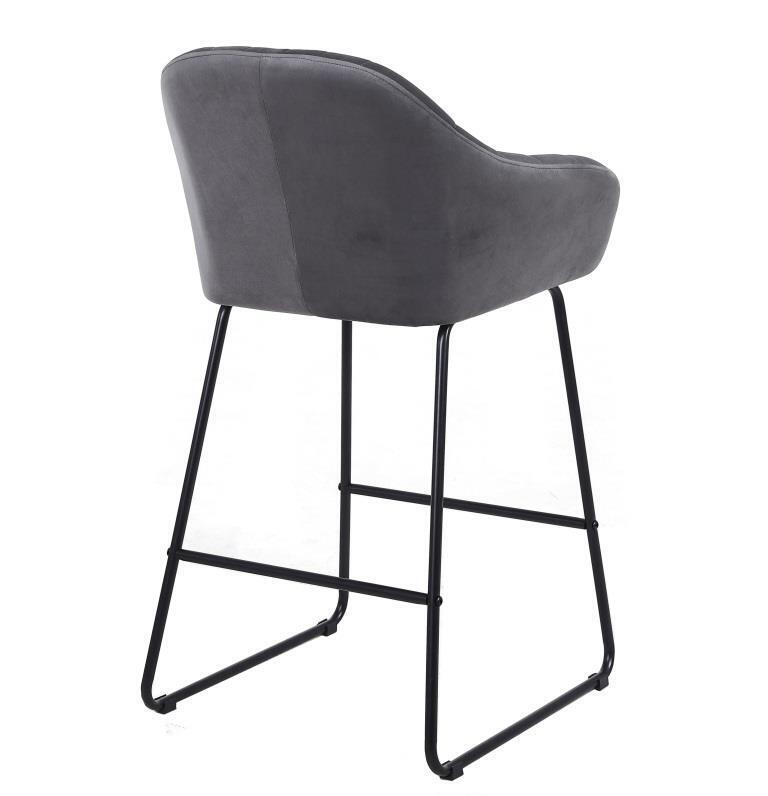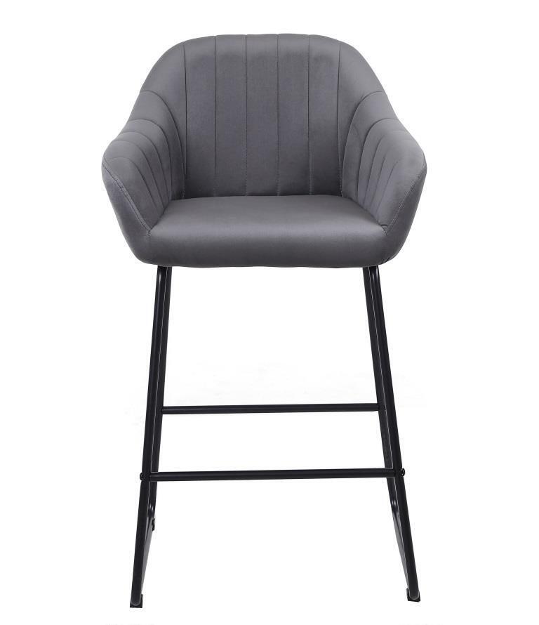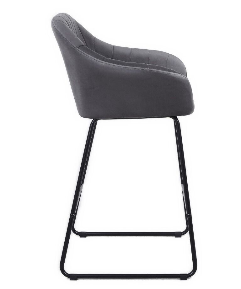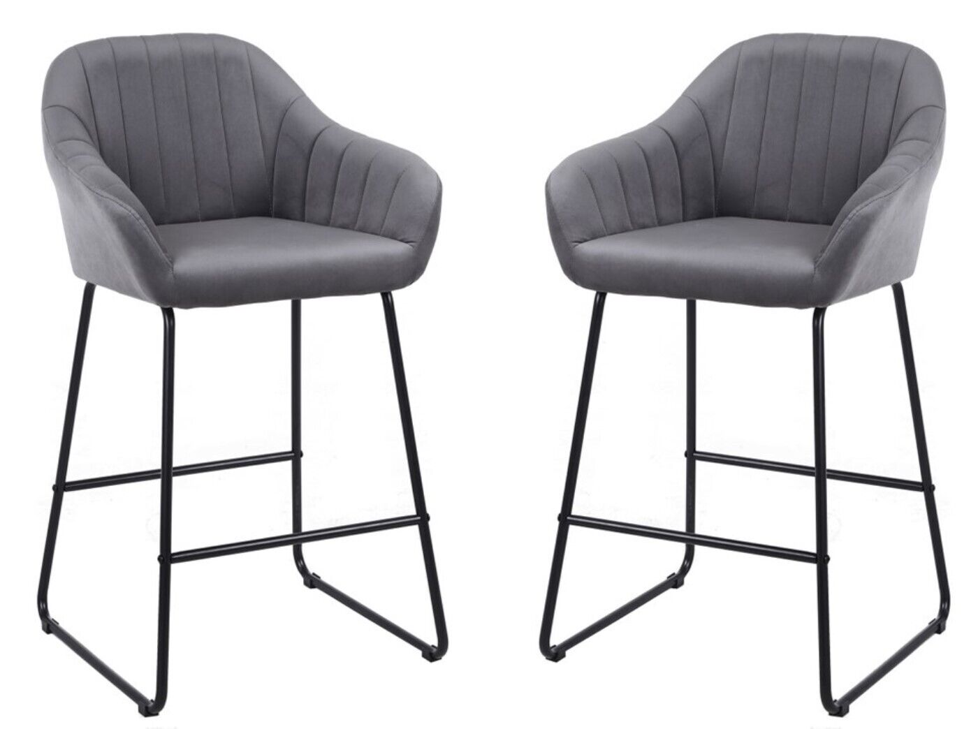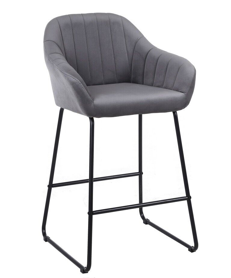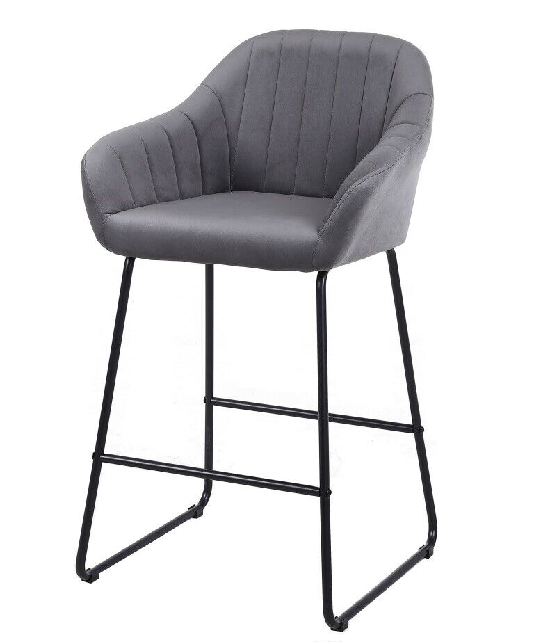 2 X Grey velvet Bar Stools fixed height Grey Breakfast Kitchen Bar