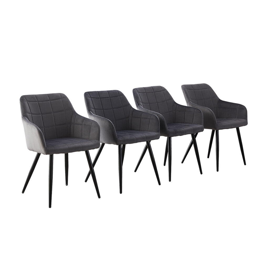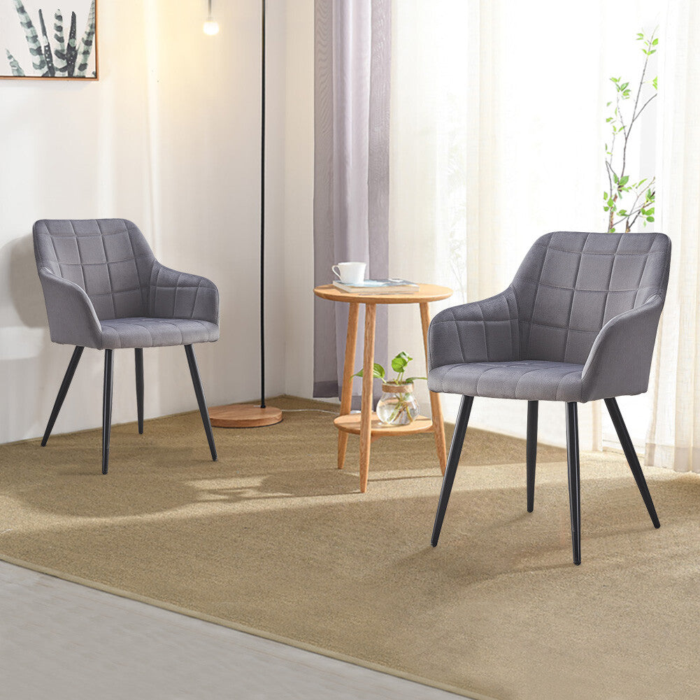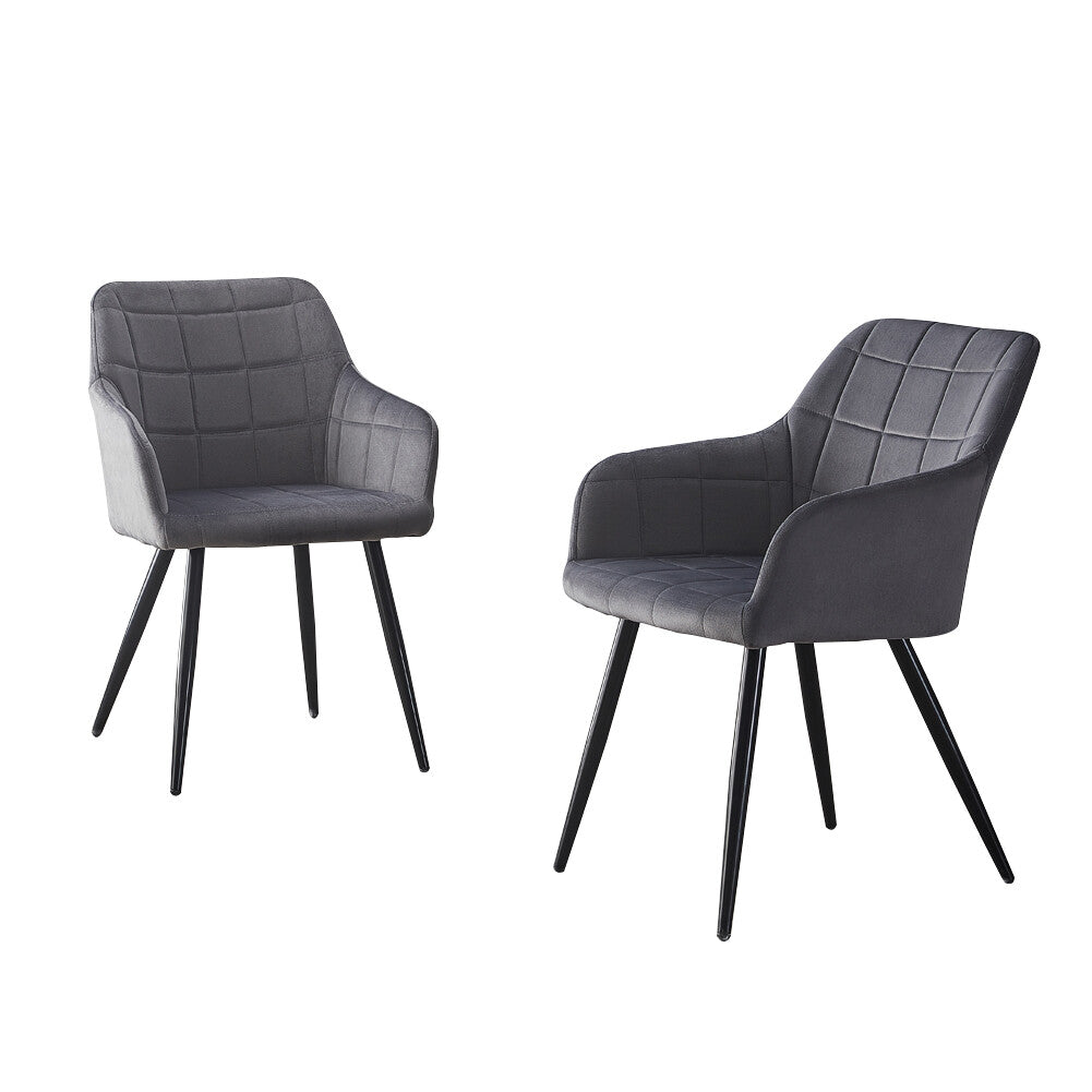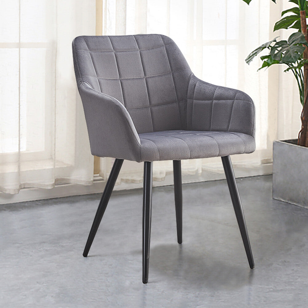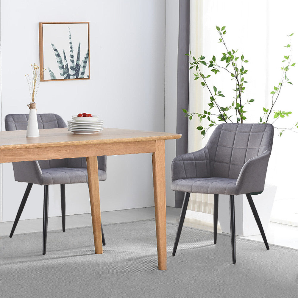 2 X Grey Velvet Dining Chairs Metal Legs Armchair Office Chairs Lounge Kitchen