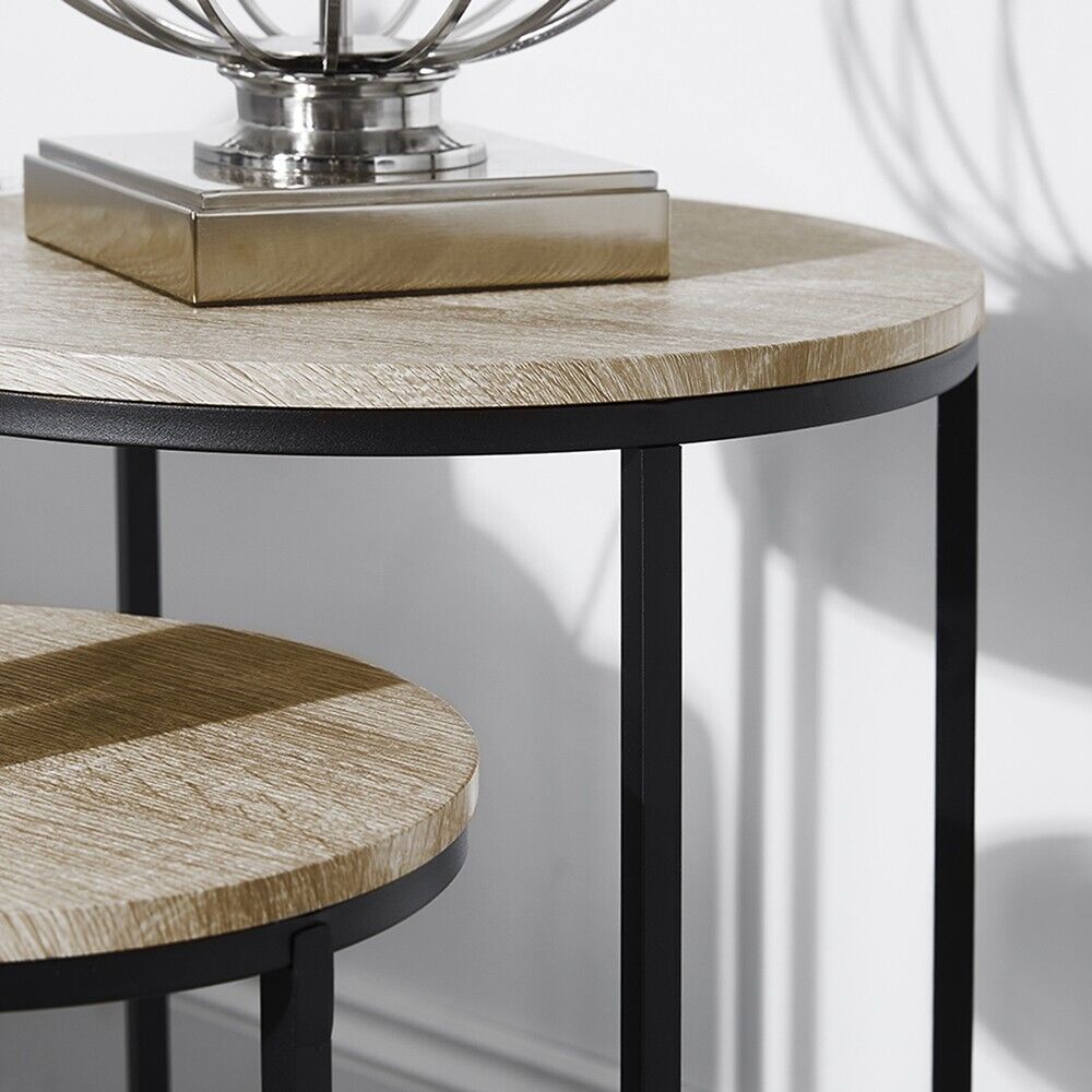 2 x Natural Effect Nest of Tables Room Furniture Home Decor Living Side