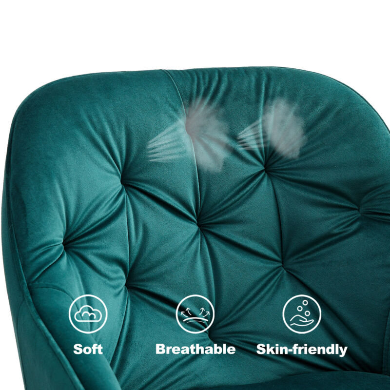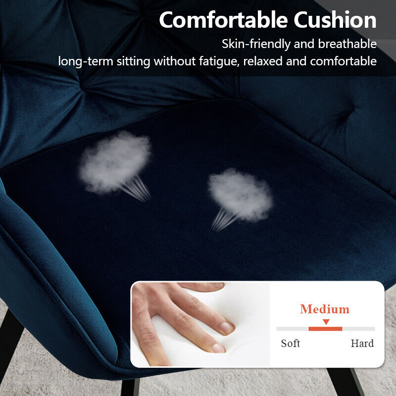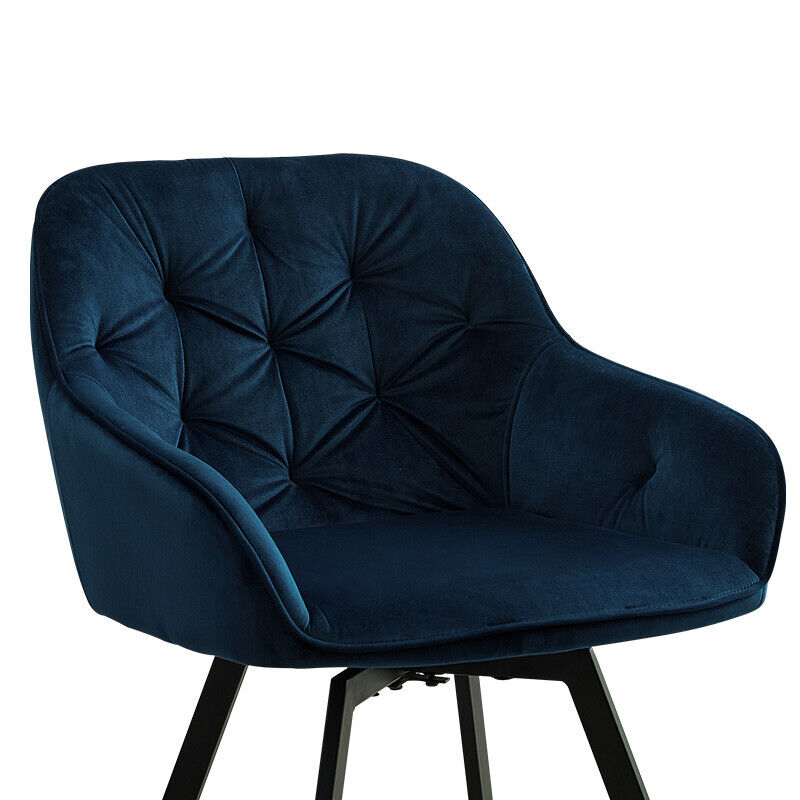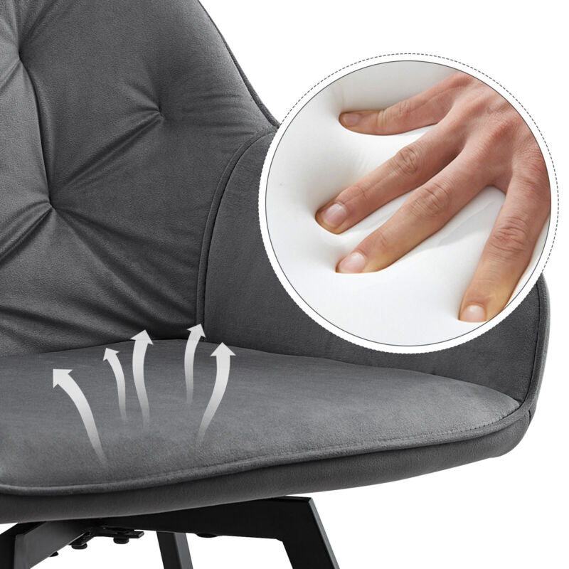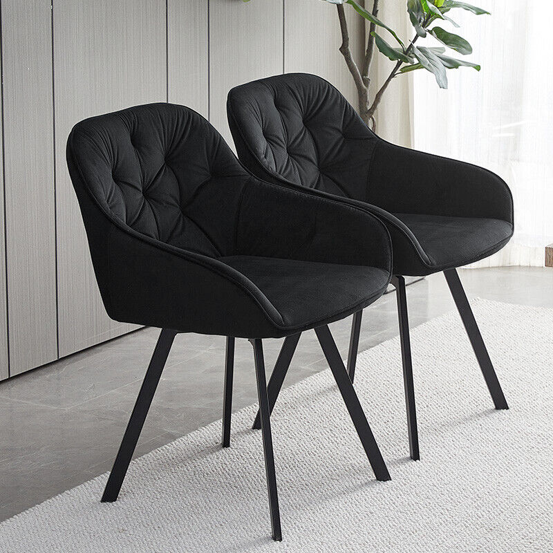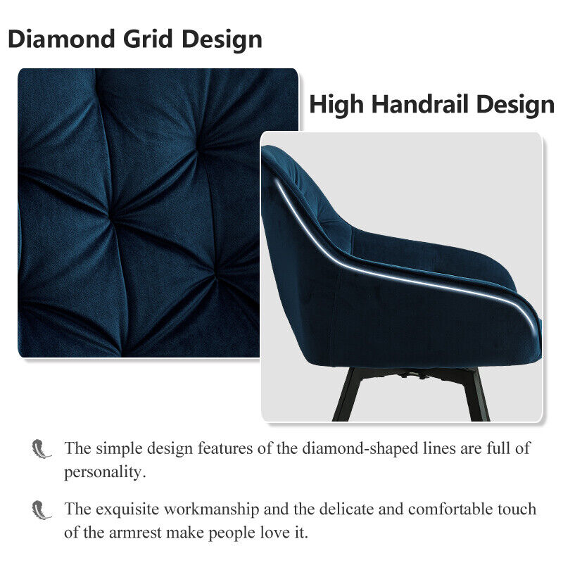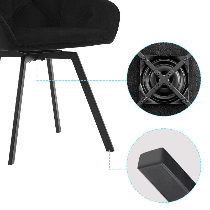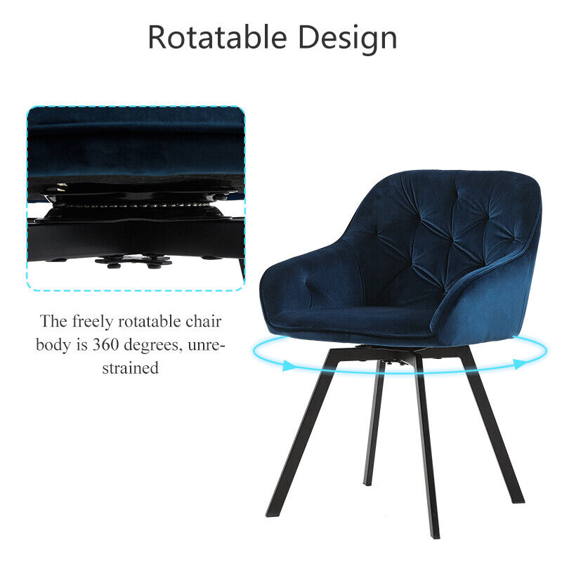 2 x Rotatable Dining Chairs Padded Velvet Seat Metal Legs Swivel Kitchen Modern