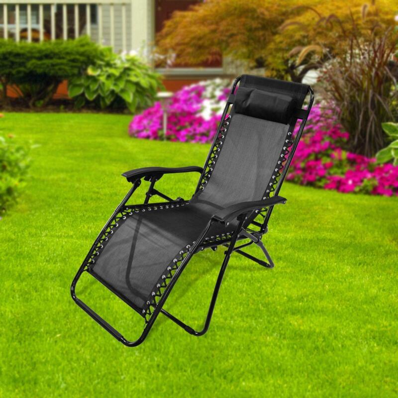 2 x Textoline Zero Gravity Chair Garden Pool Reclining Folding Sun Black Lounger