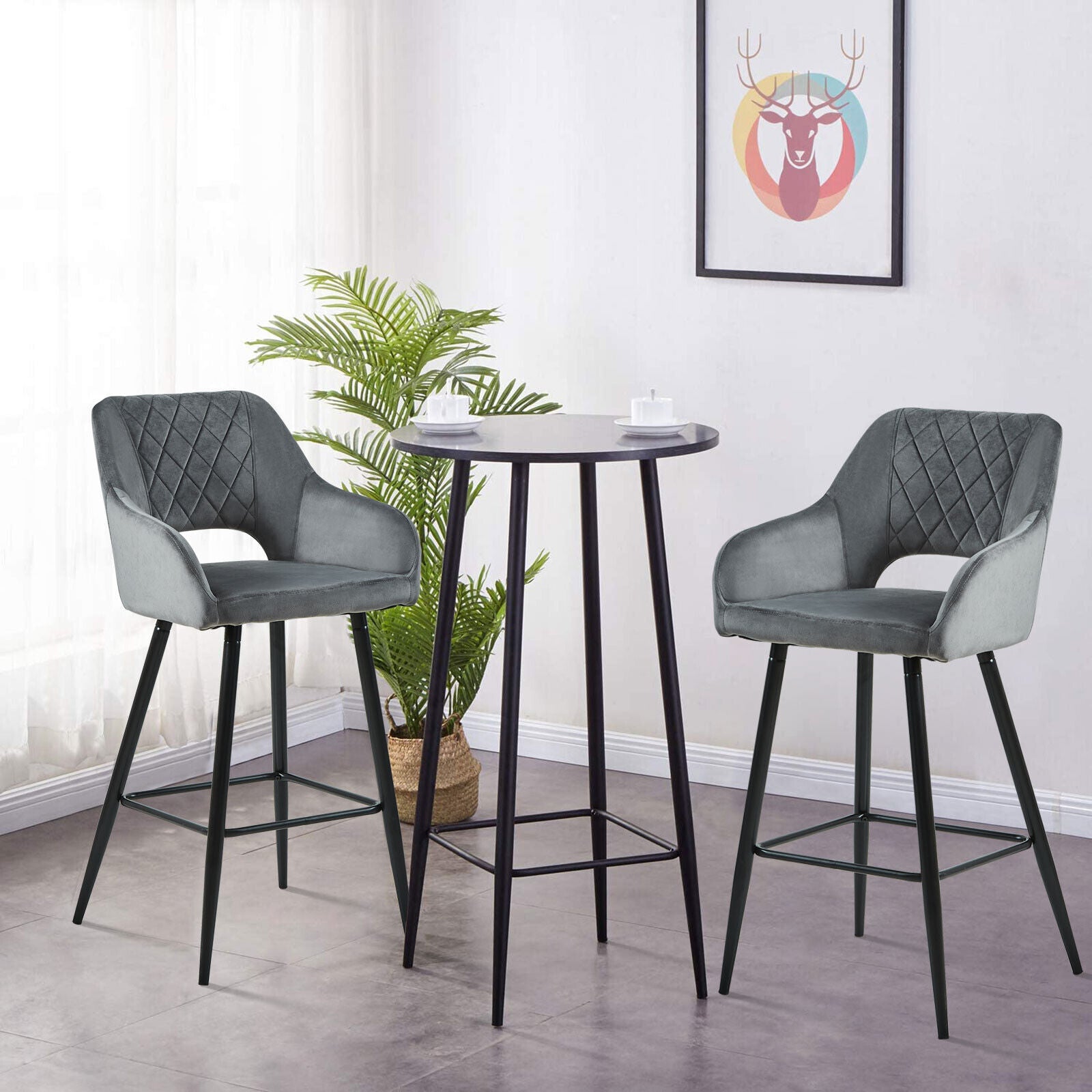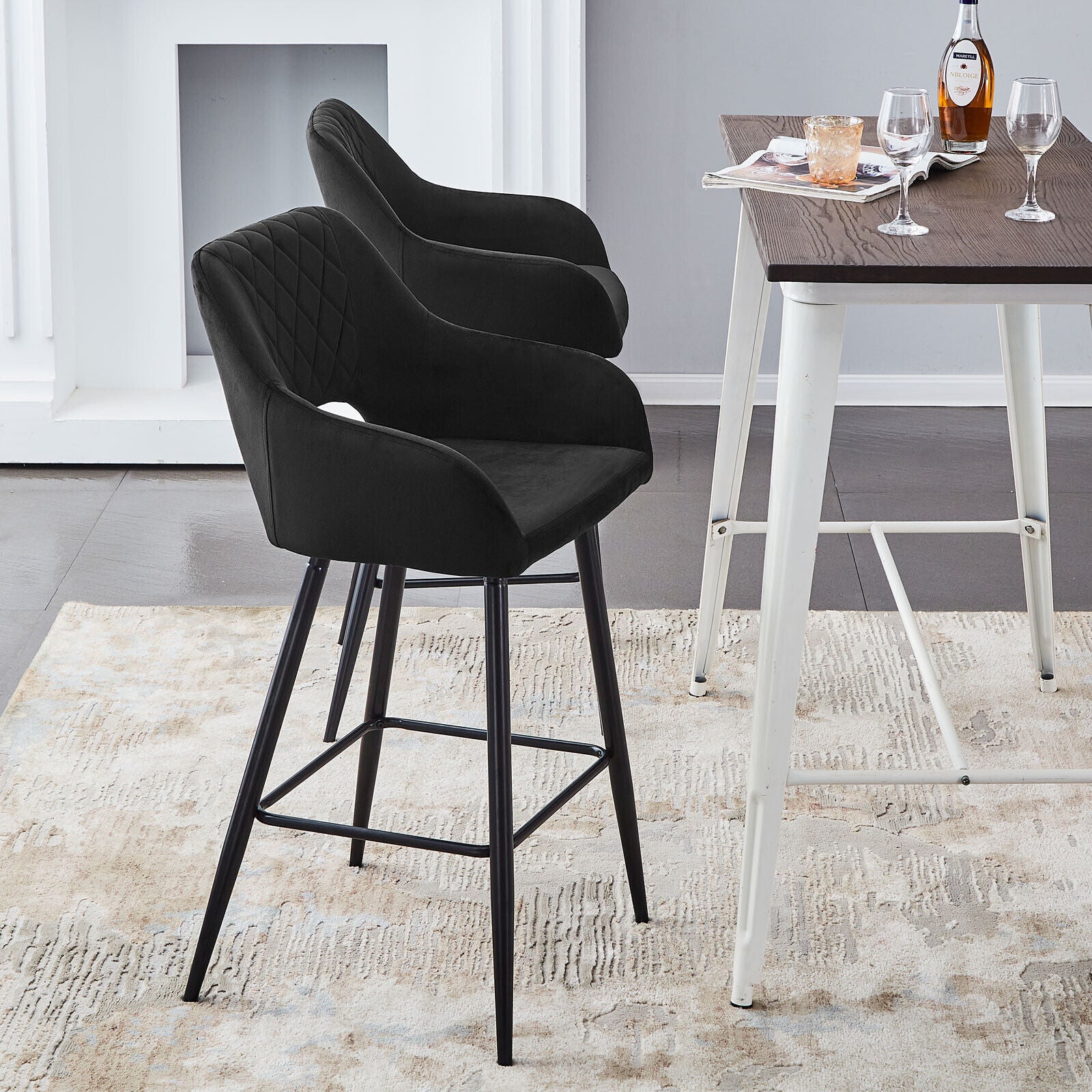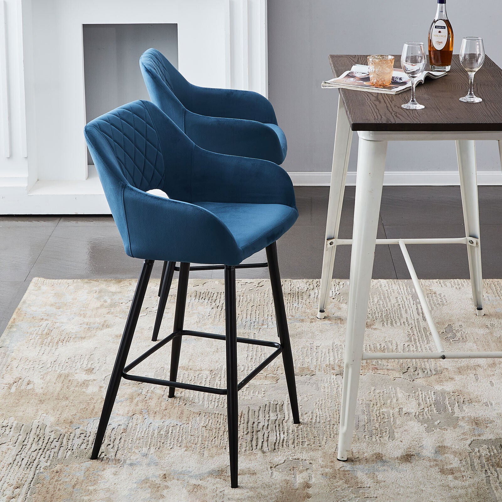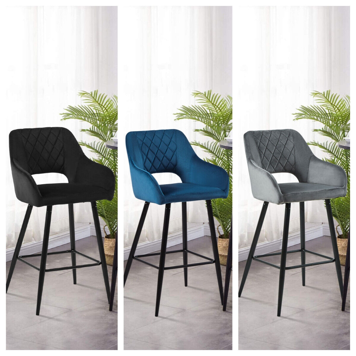 2 x Velvet Bar Stools Metal Leg Padded Seat Breakfast Stools Kitchen Chair New