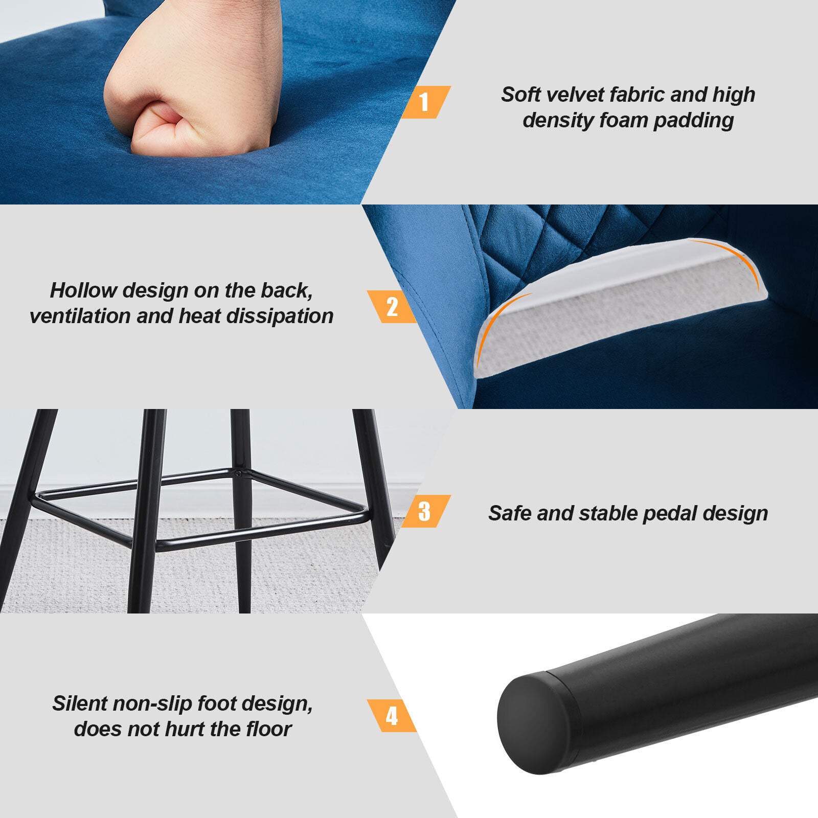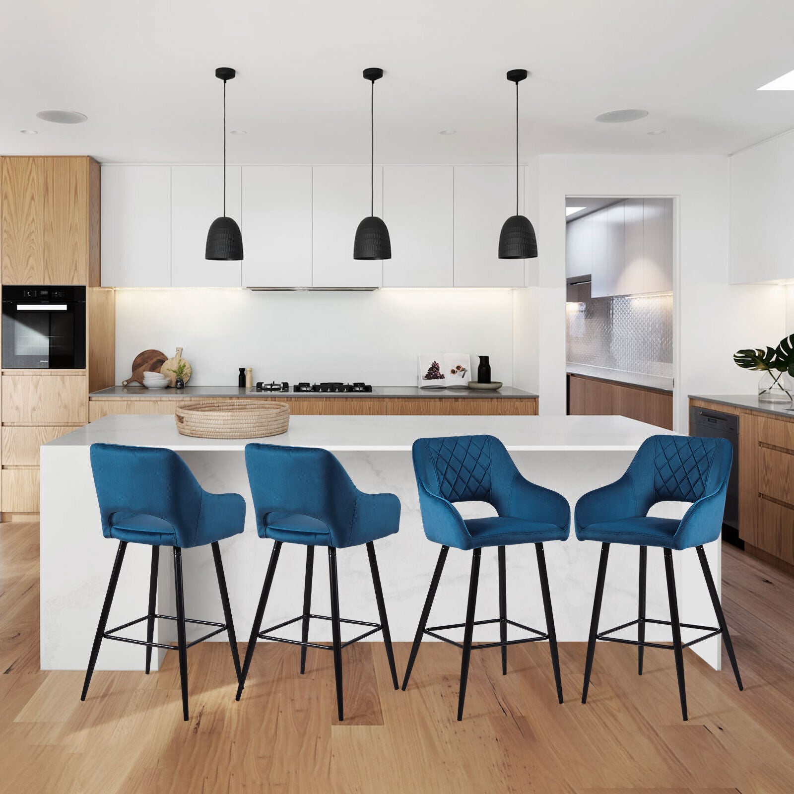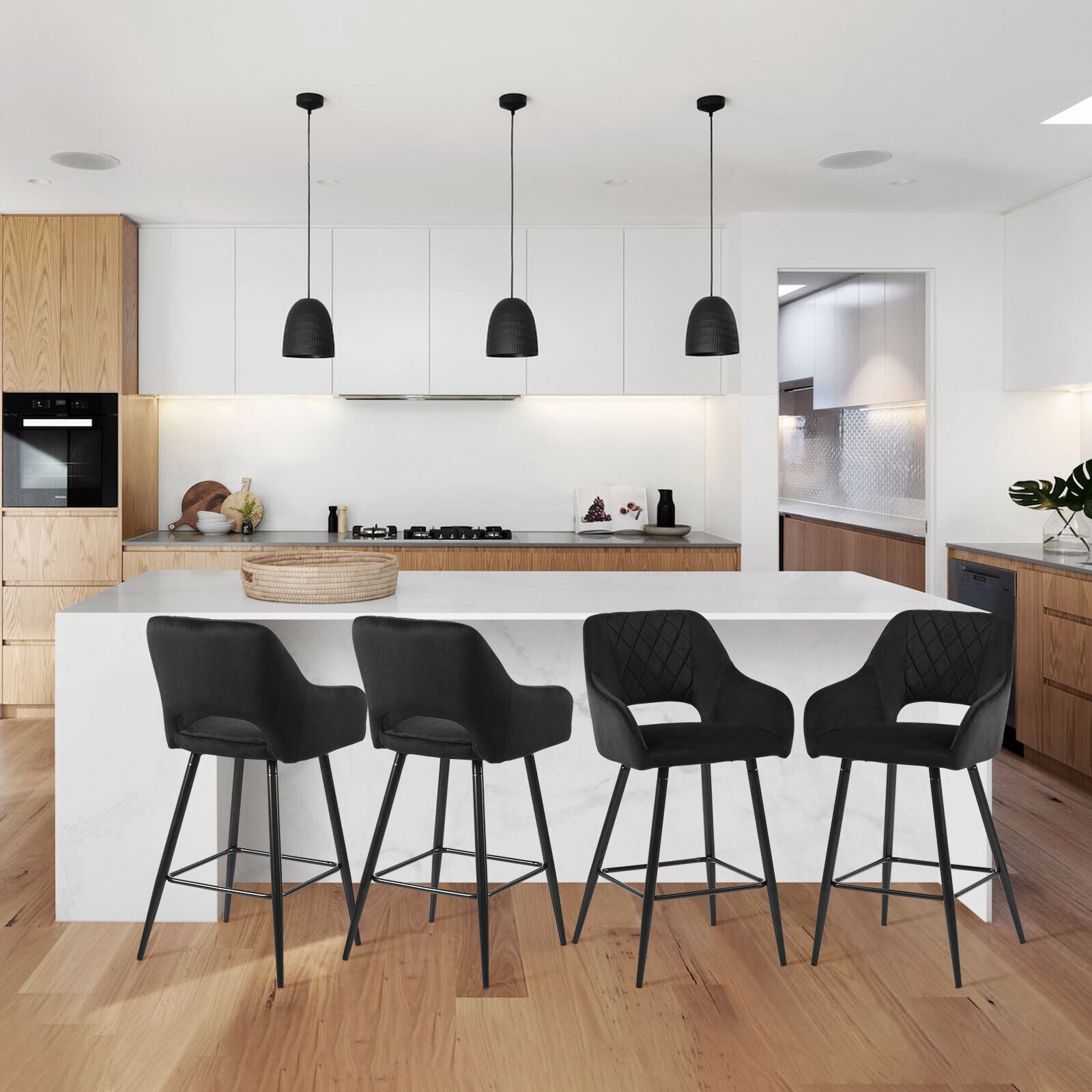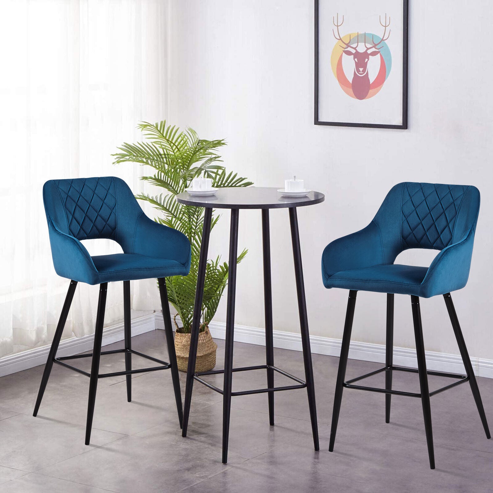 2 x Velvet Bar Stools Metal Leg Padded Seat Breakfast Stools Kitchen Chair New