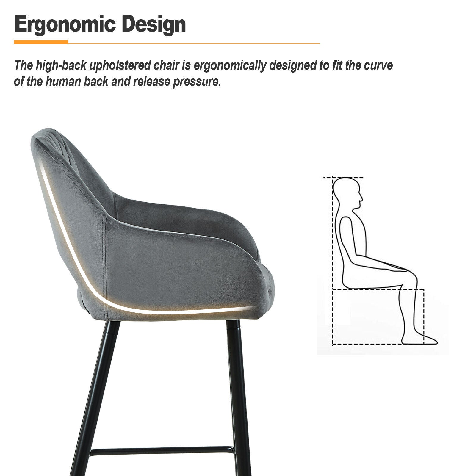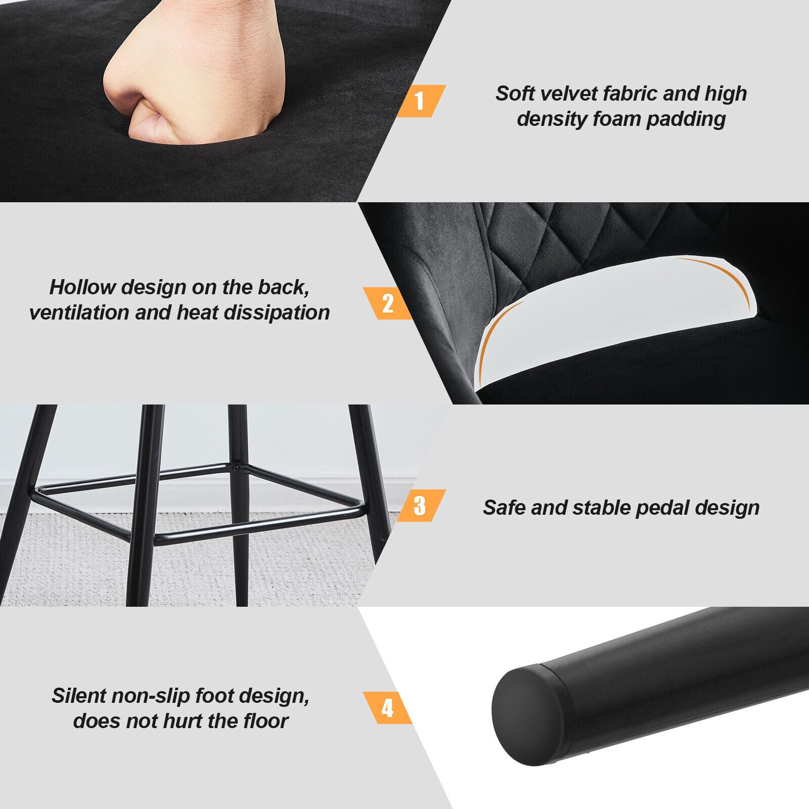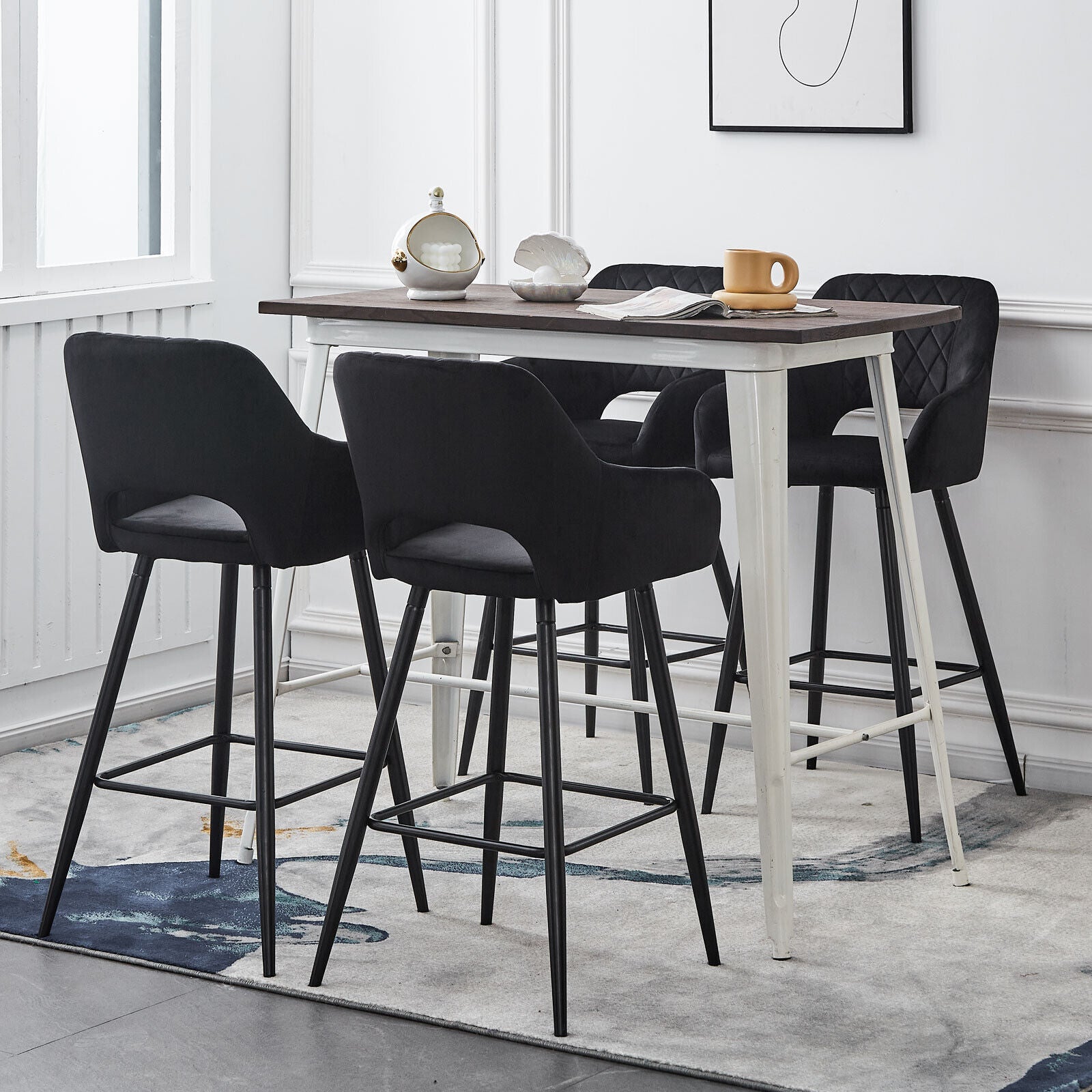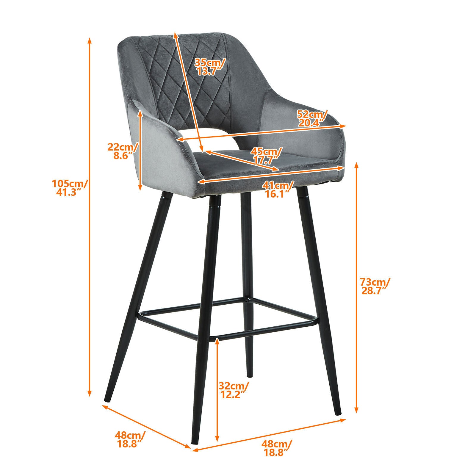 2 x Velvet Bar Stools Metal Leg Padded Seat Breakfast Stools Kitchen Chair New