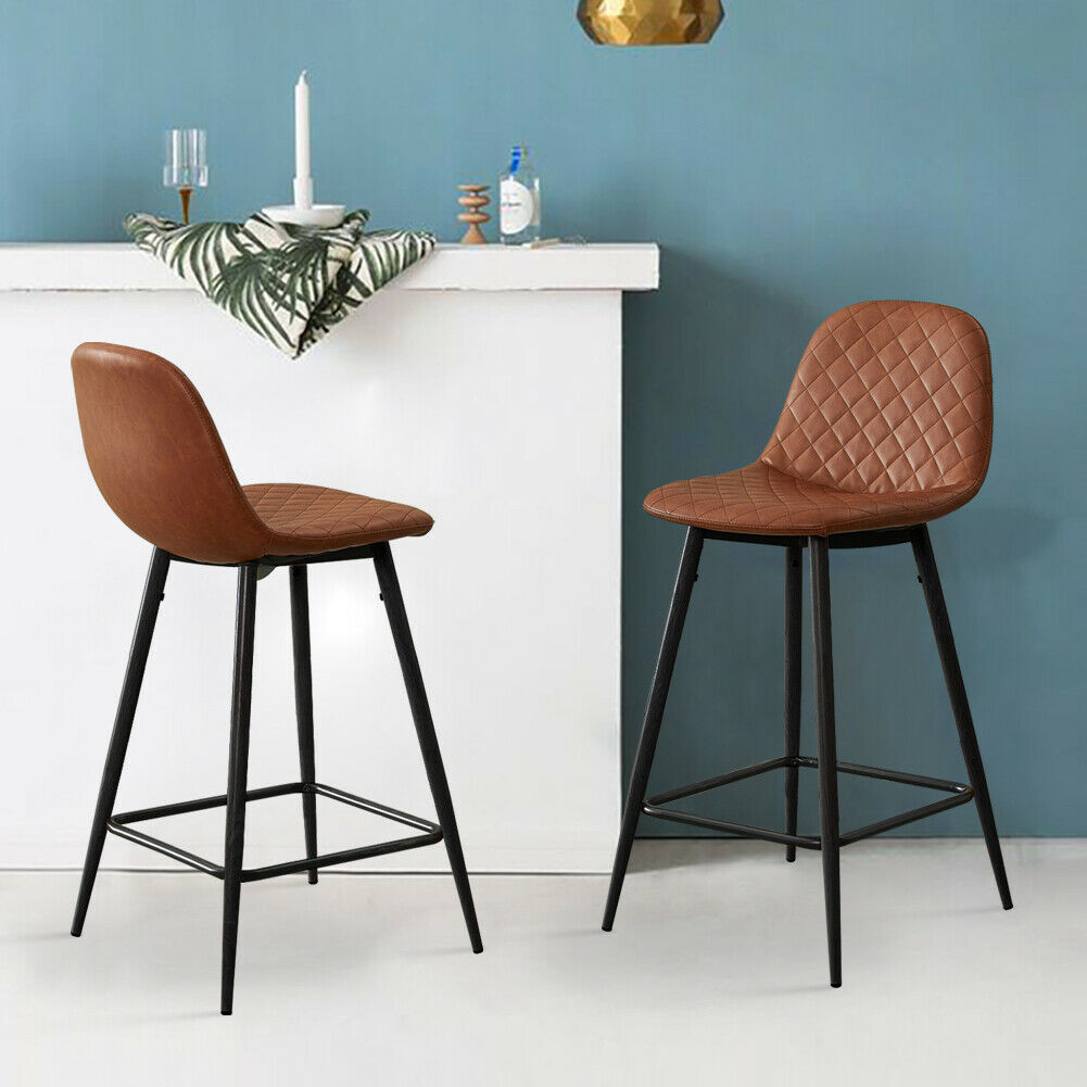 2 x Vintage Bar Stools Breakfast Chairs Dining Chair High Legs Kitchen Padded
