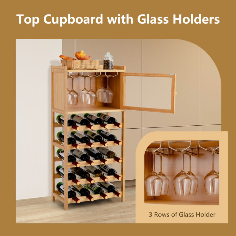 20-Bottle Bamboo Wine Rack Cabinet Freestanding Wine Display Cupboard Shelf