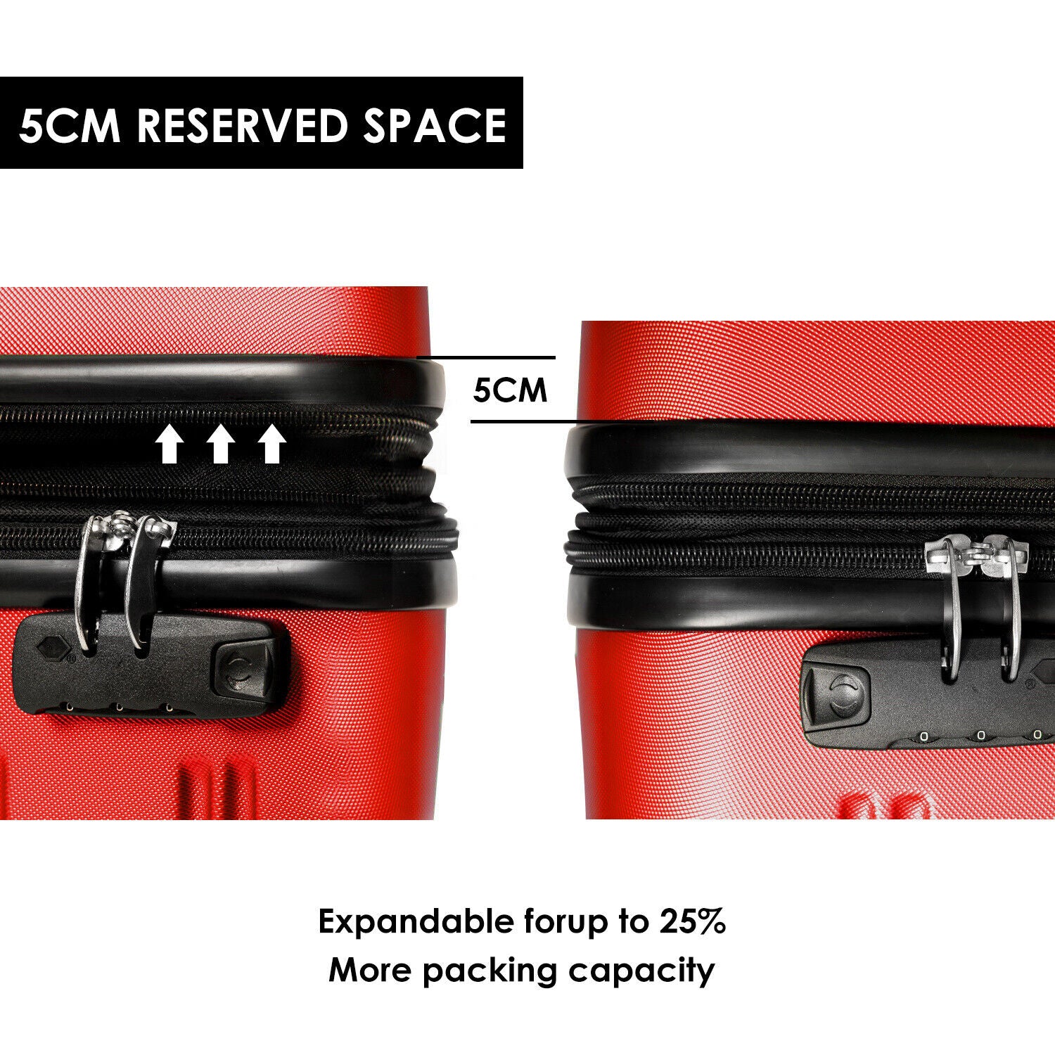 20" Hard Shell Cabin ABS Suitcase Travel Luggage Trolley Case Lightweight Red