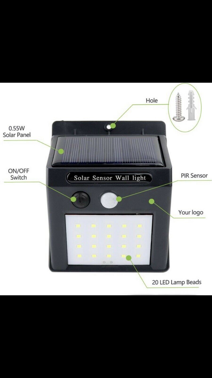 20 LED Solar Light With Security Motion Sensor, Outdoor Lamp, Waterproof