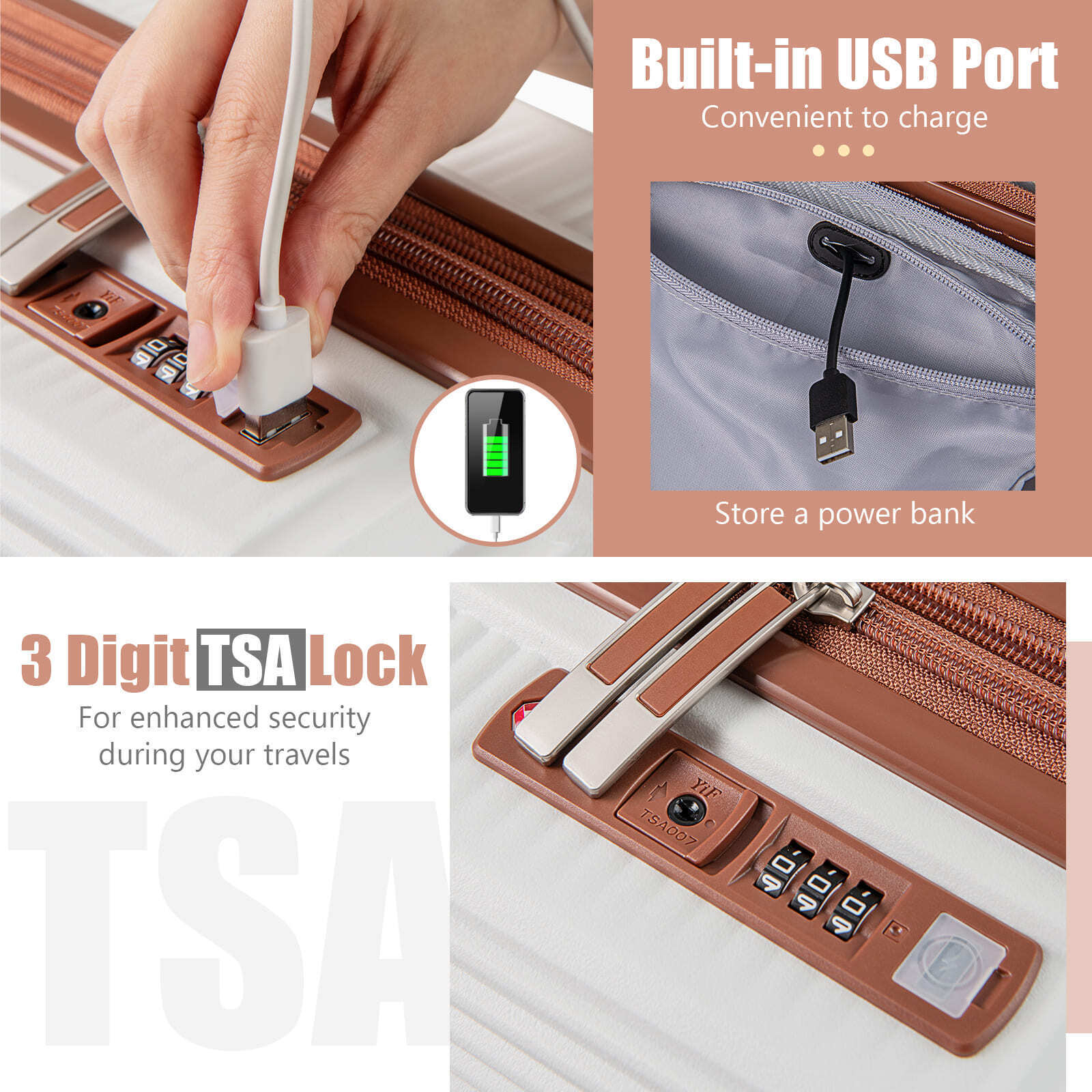 20” Lightweight PP Hardshell Luggage w/ TSA Lock&Spinner Wheels-White
