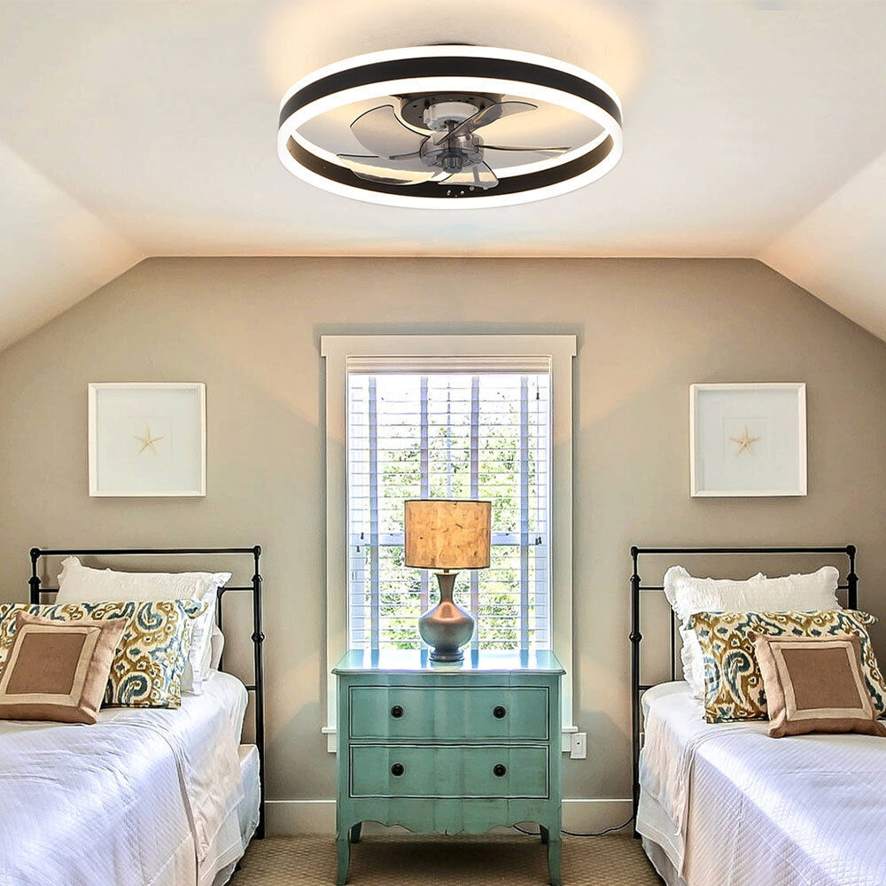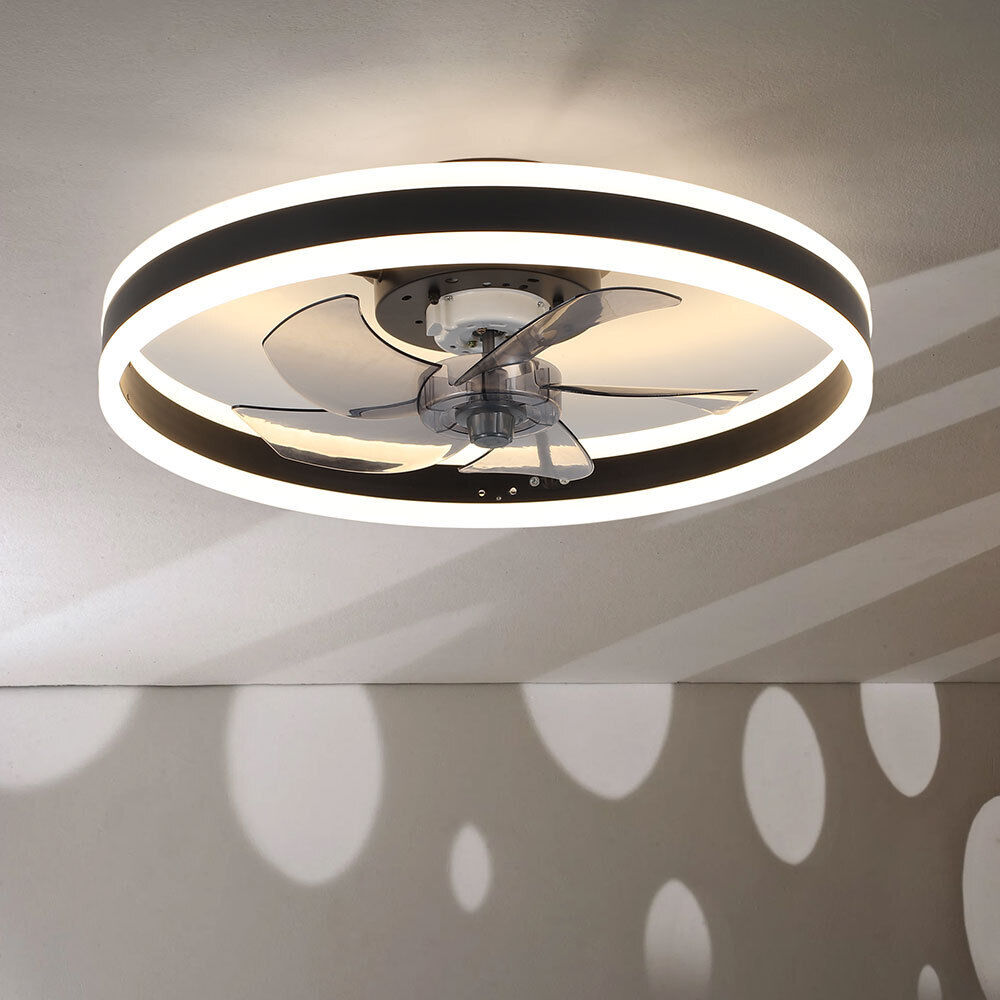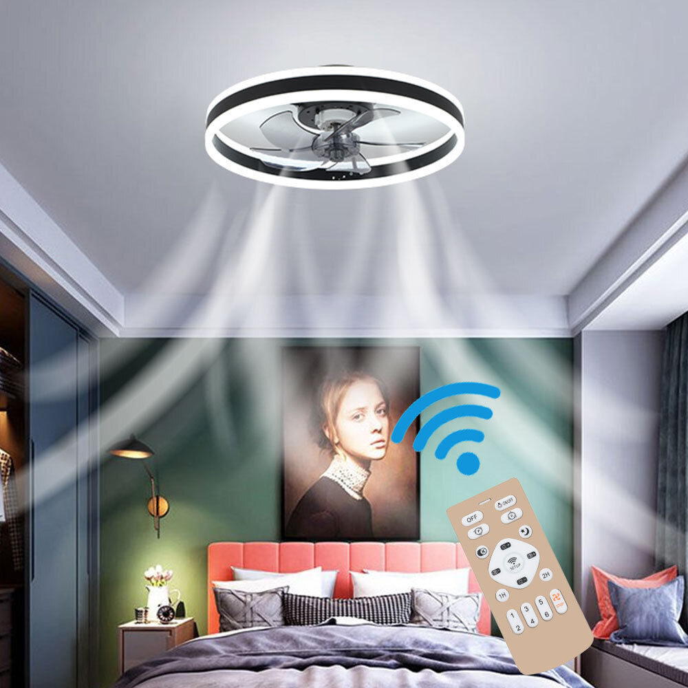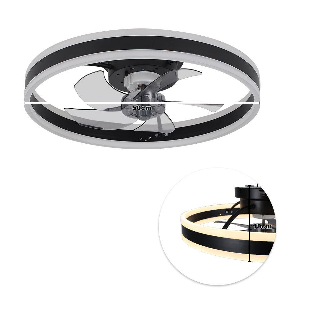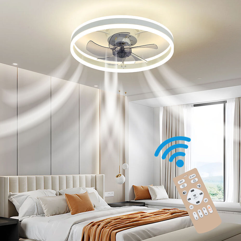 20" Round Ceiling Fan with Lighting Adjustable Wind Speed APP Control Bedroom