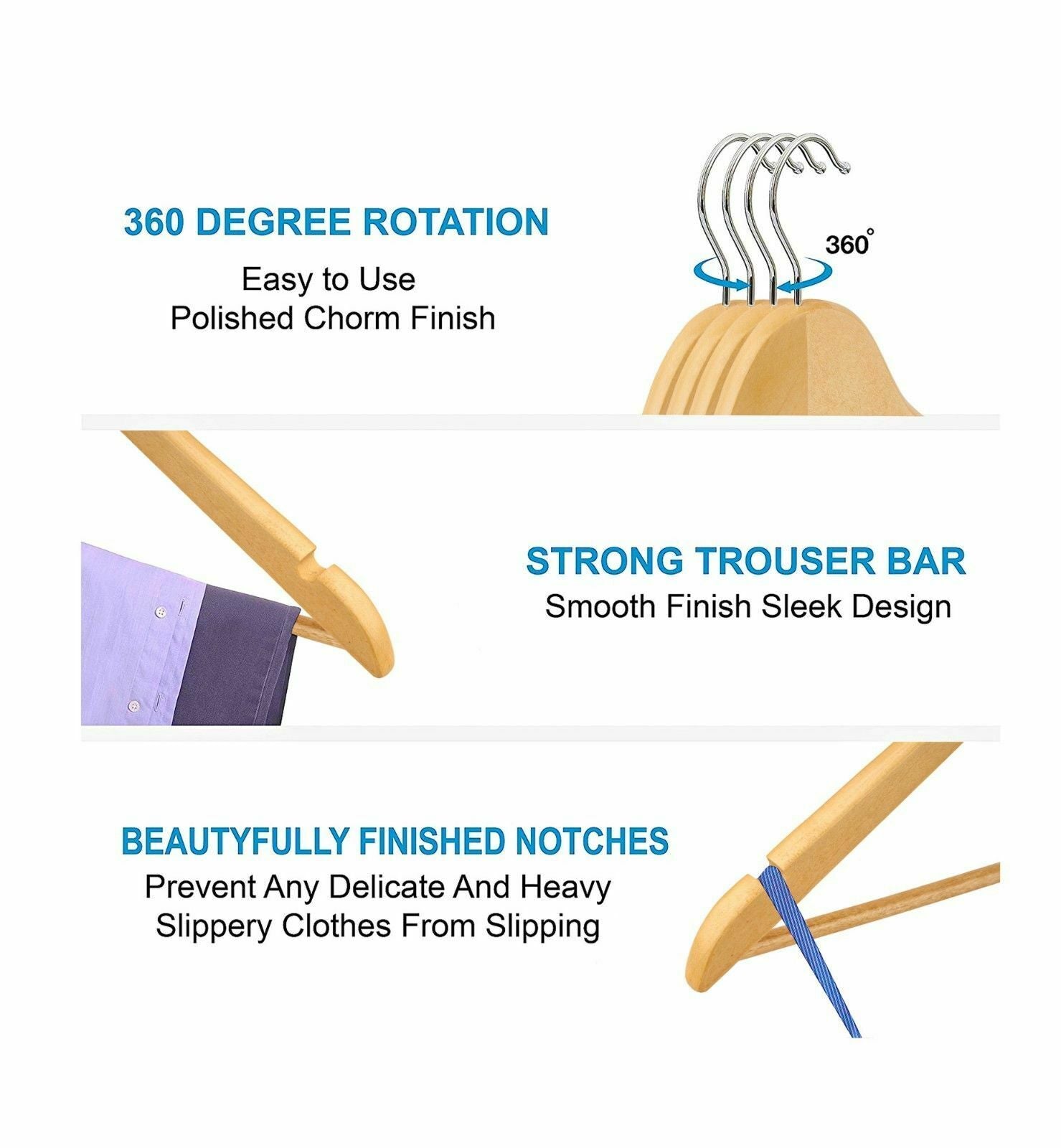 20 x WOODEN COAT HANGERS SUIT GARMENTS CLOTHES WOOD HANGER TROUSER BAR SET