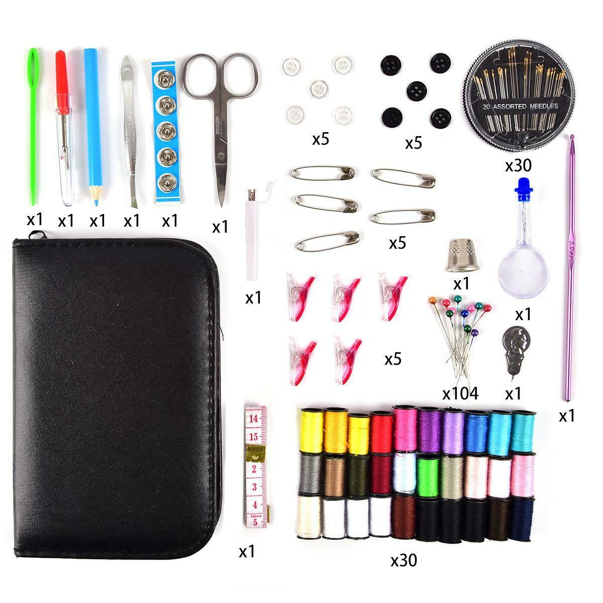 200 Piece Mini Sewing Kit Thread Scissor Tape Pins Thimble Needle Travel Home