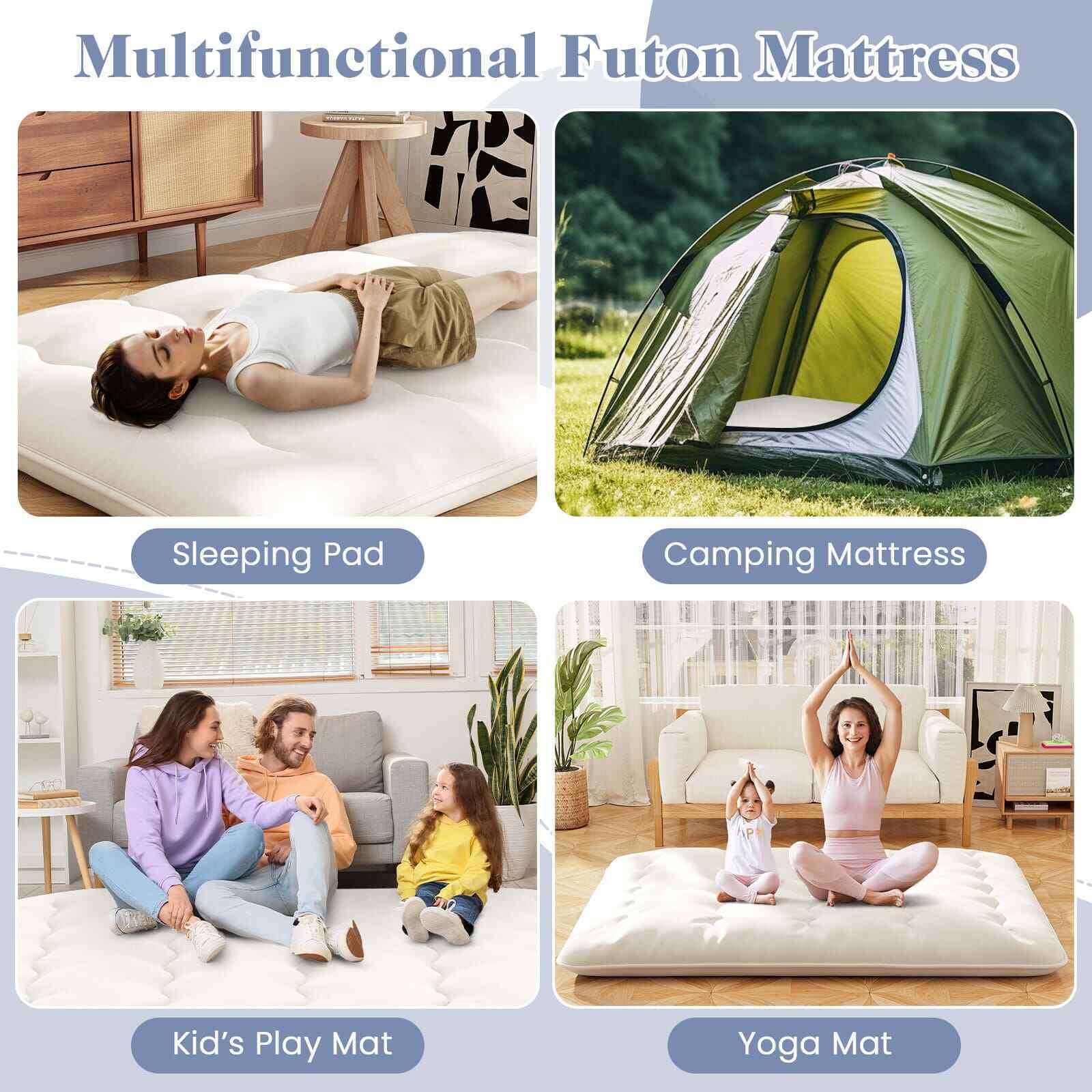 200 x 150 x 10cm Japanese Floor Mattress Futon Mattress Roll up Mattress-Beige
