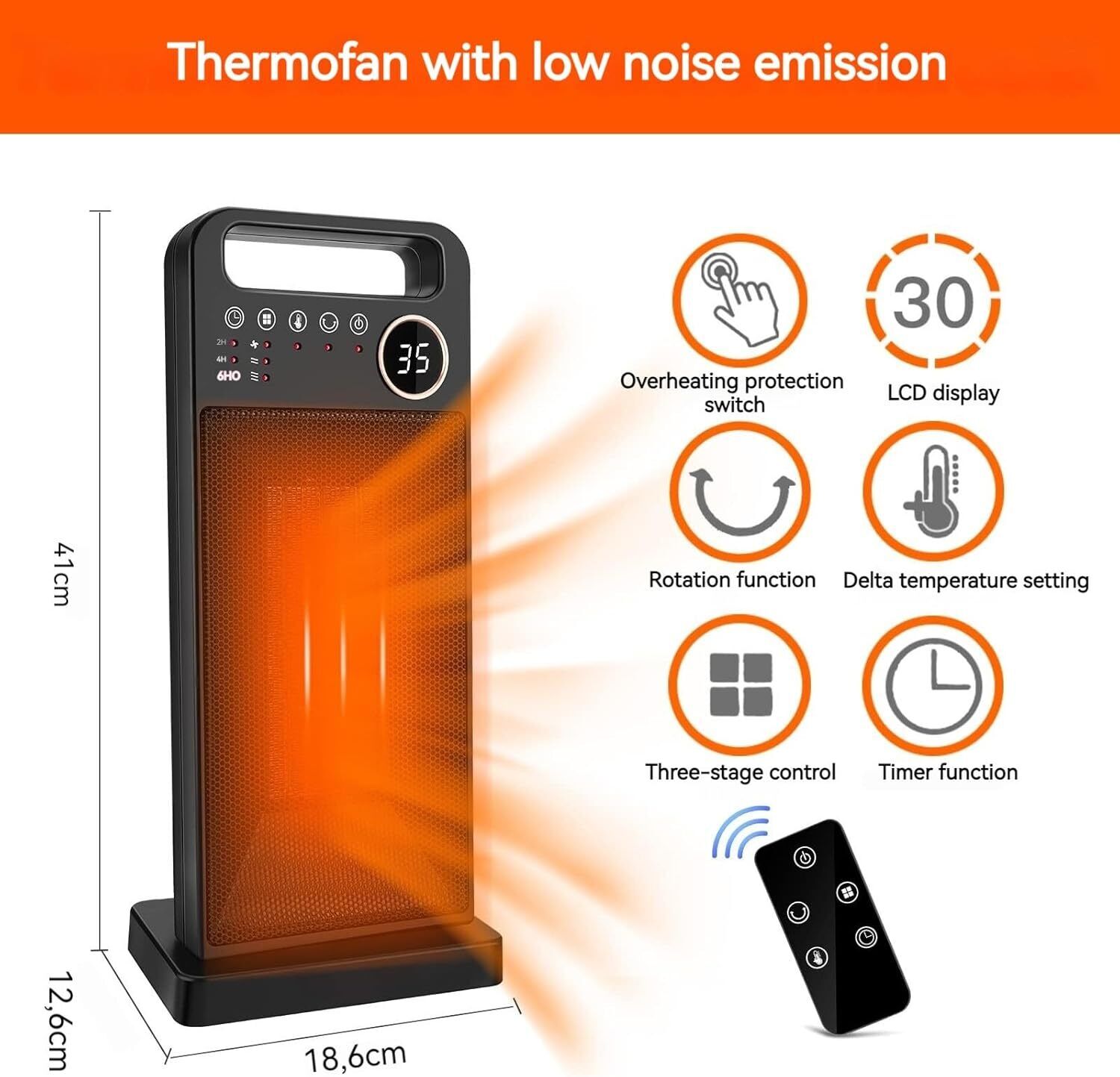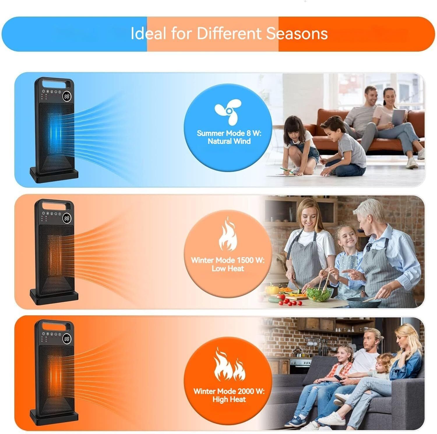 2000W Electric Heater PTC Ceramic Space Heater Fan Remote Control Warmer Timer