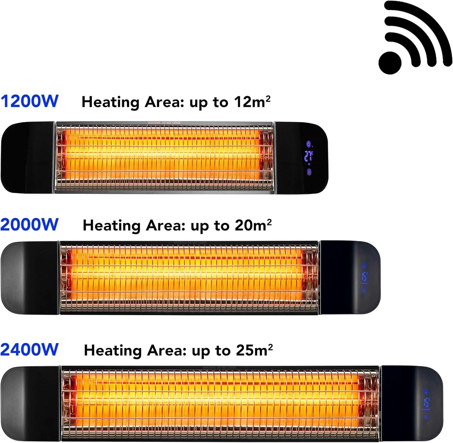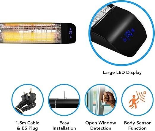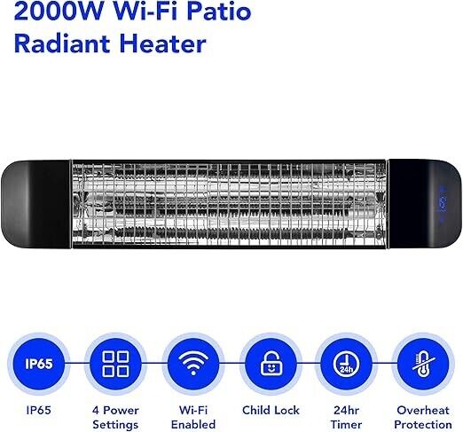 2000W Infrared Patio Heater - Wall Mounted, WiFi Enabled, IP65 Waterproof