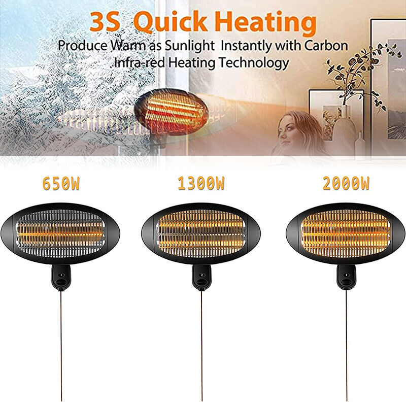 2000W Patio Heaters Electric Wall Mounted Outdoor Garden Warmer Portable UK
