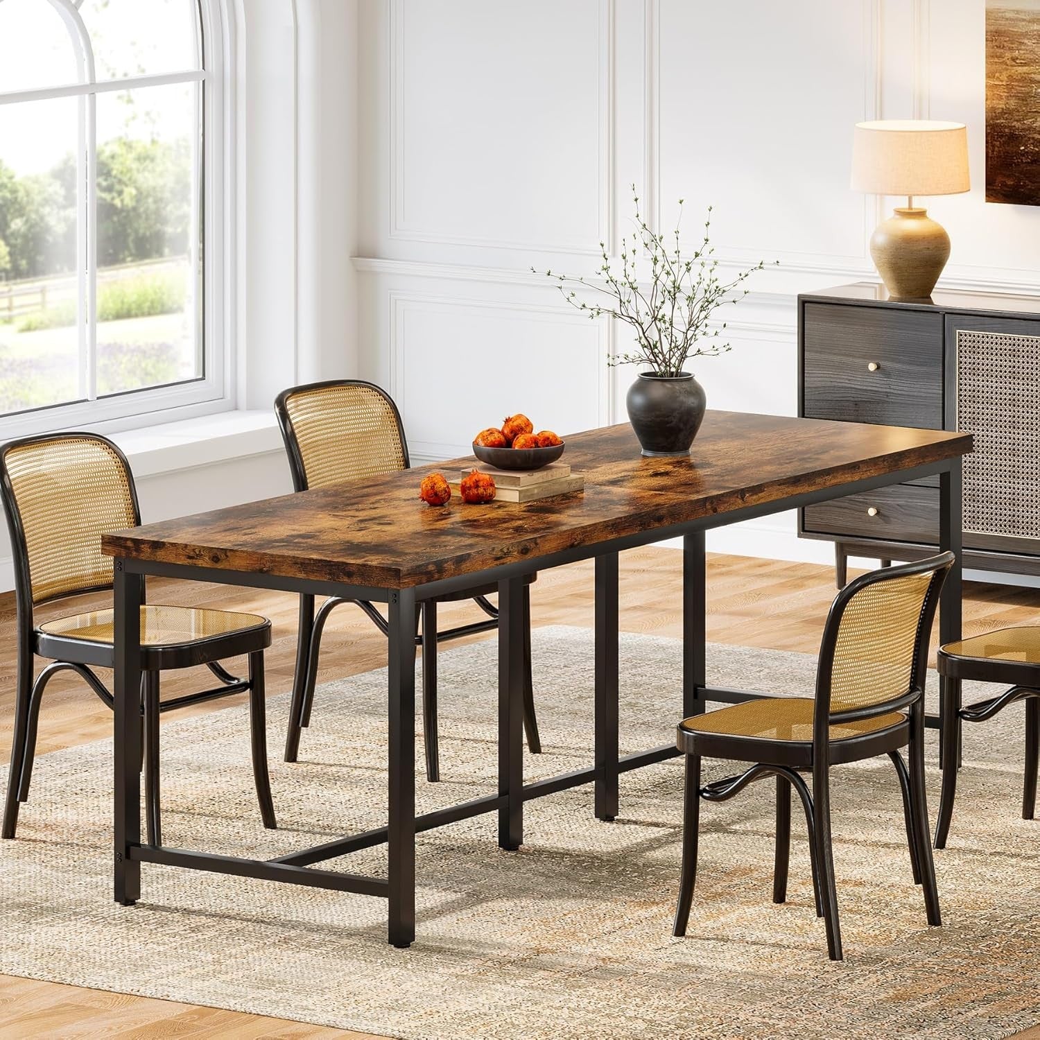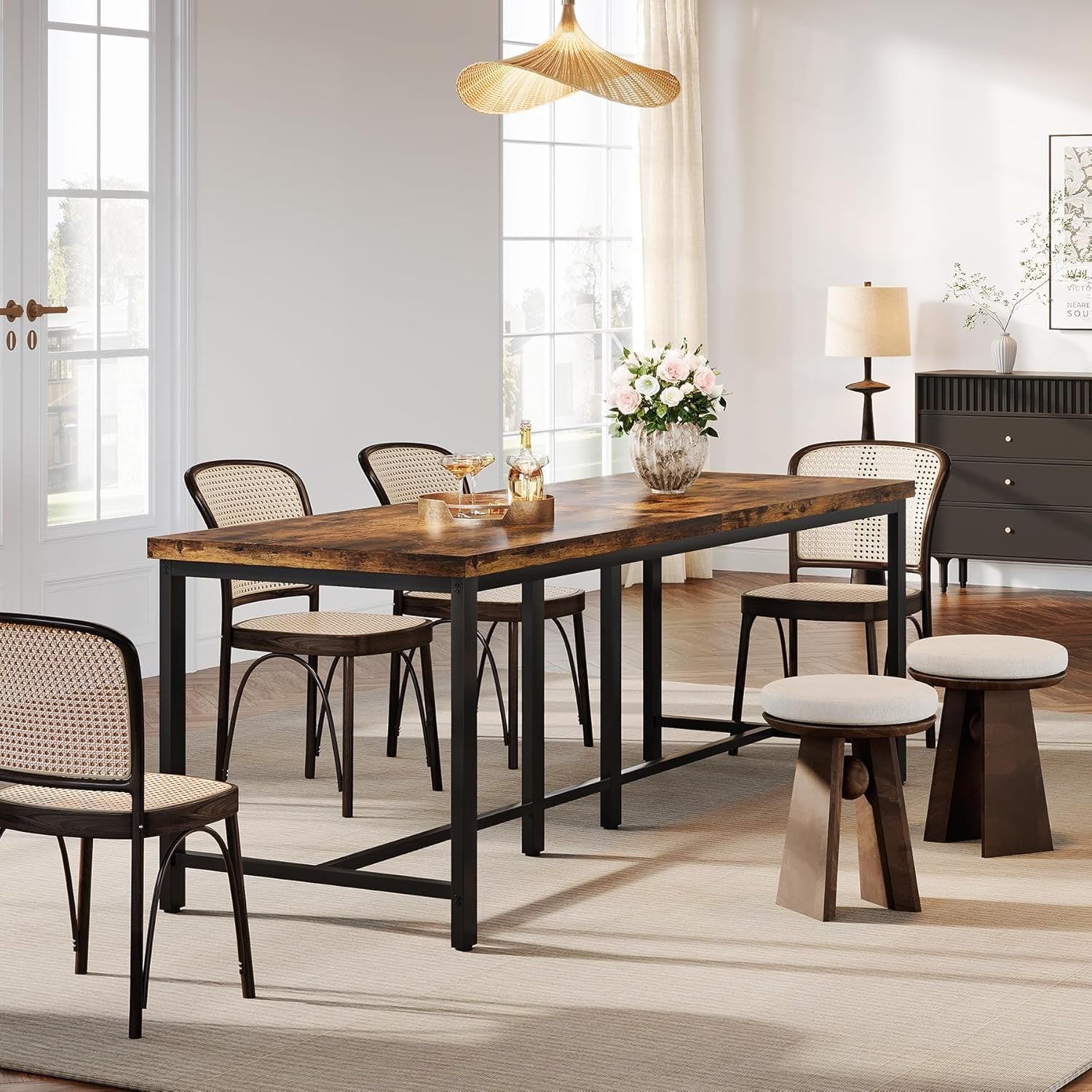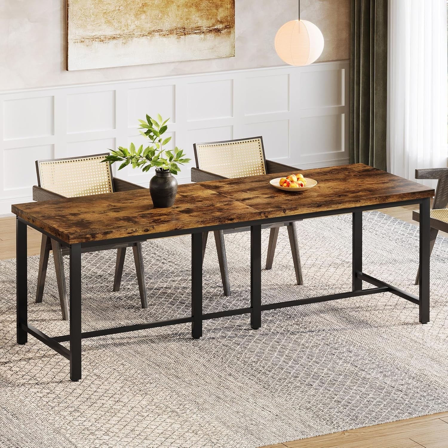 200cm Dining Table for 6-8, Large Industrial Rectangular Wooden Kitchen Table