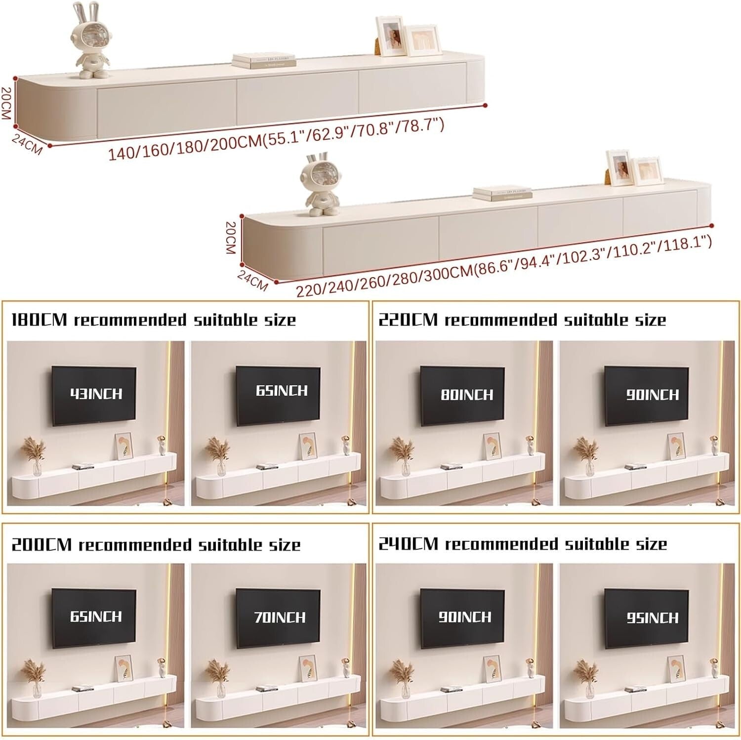 200cm Floating TV Stand Wall Mounted TV Shelves With Door TV Media Console White