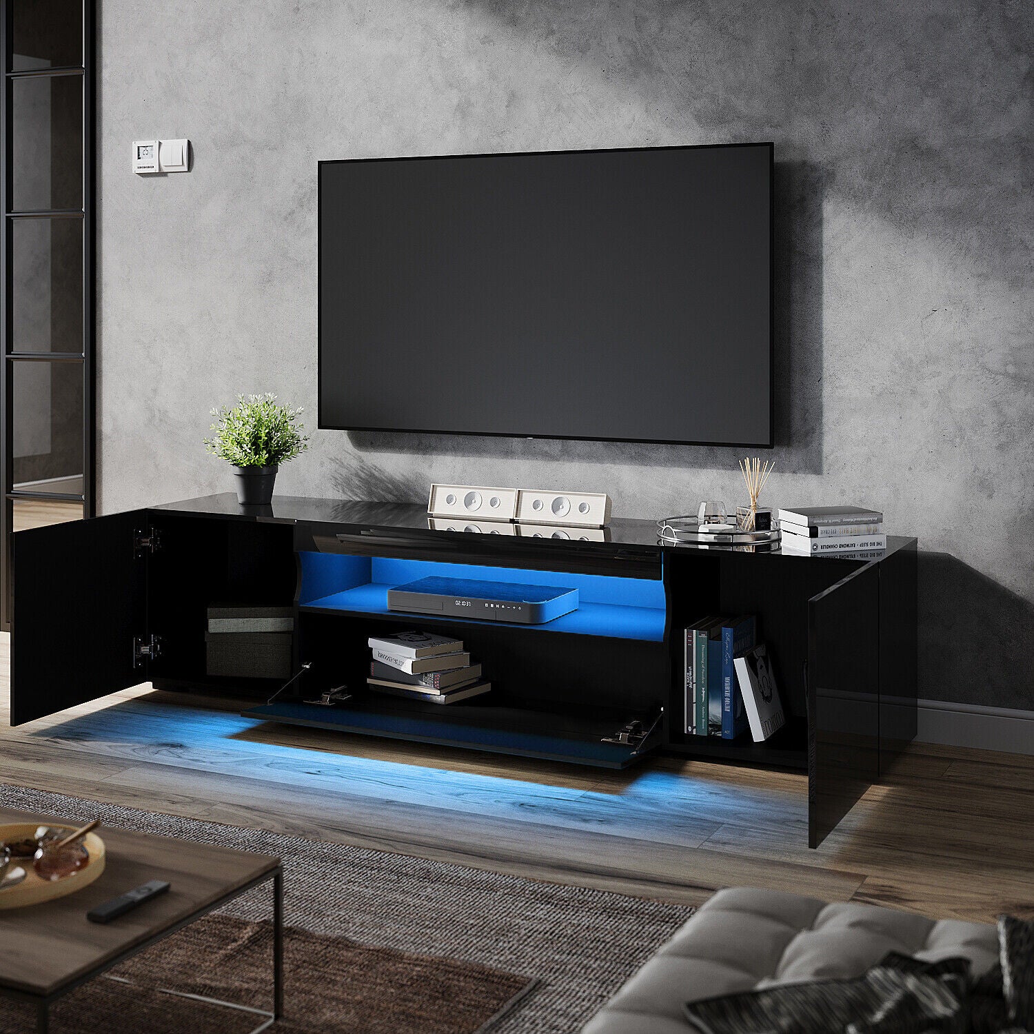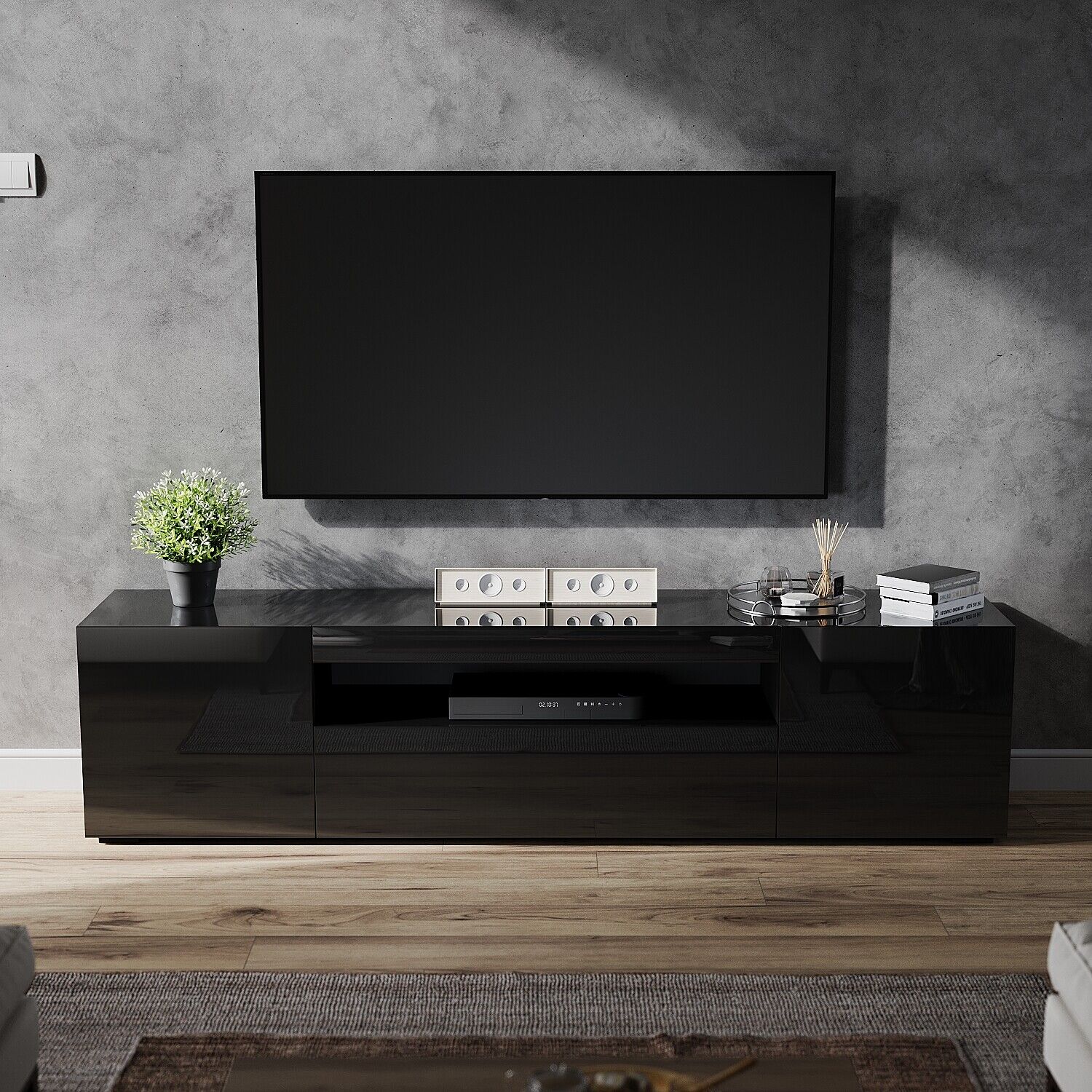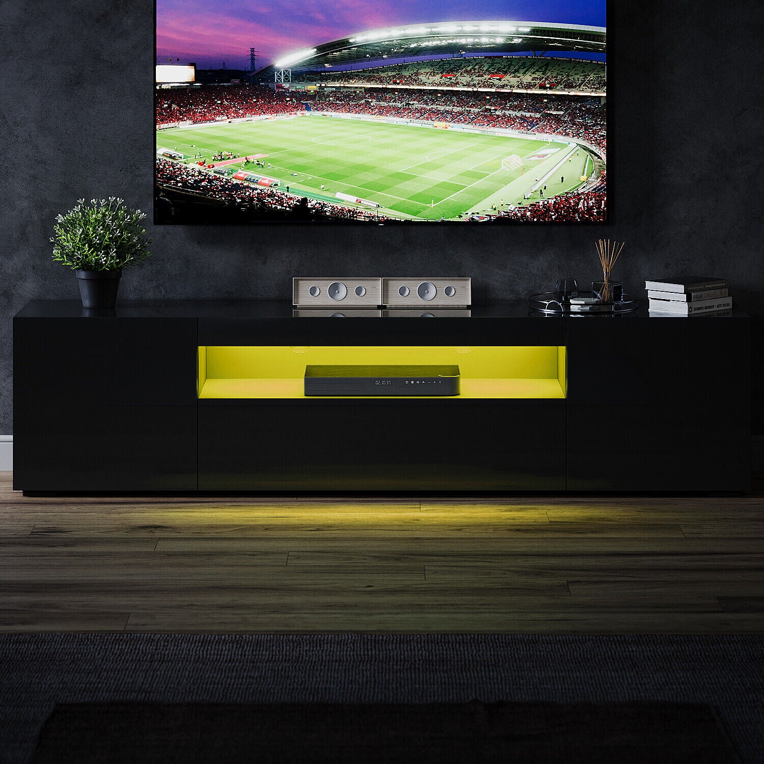 200cm High Gloss Black TV Stand Cabinet Unit Living Room Furniture with RGB LED