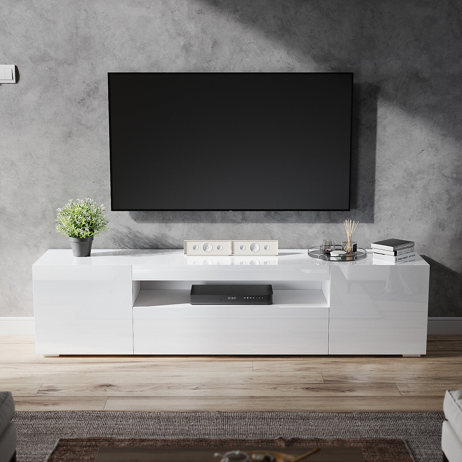 200cm High Gloss TV Stand White Cabinet Unit Doors Storage with RGB LED Cupboard