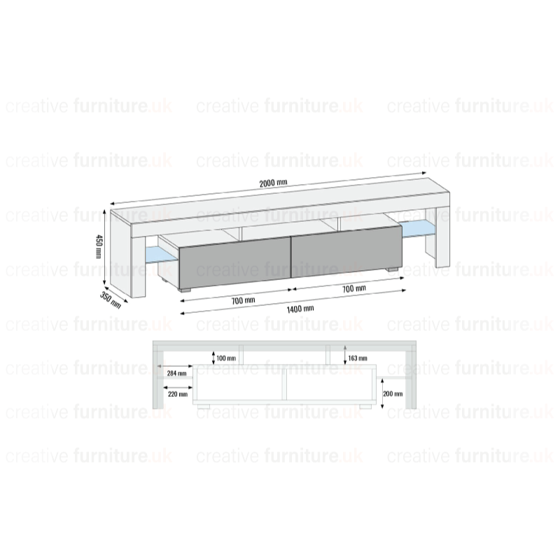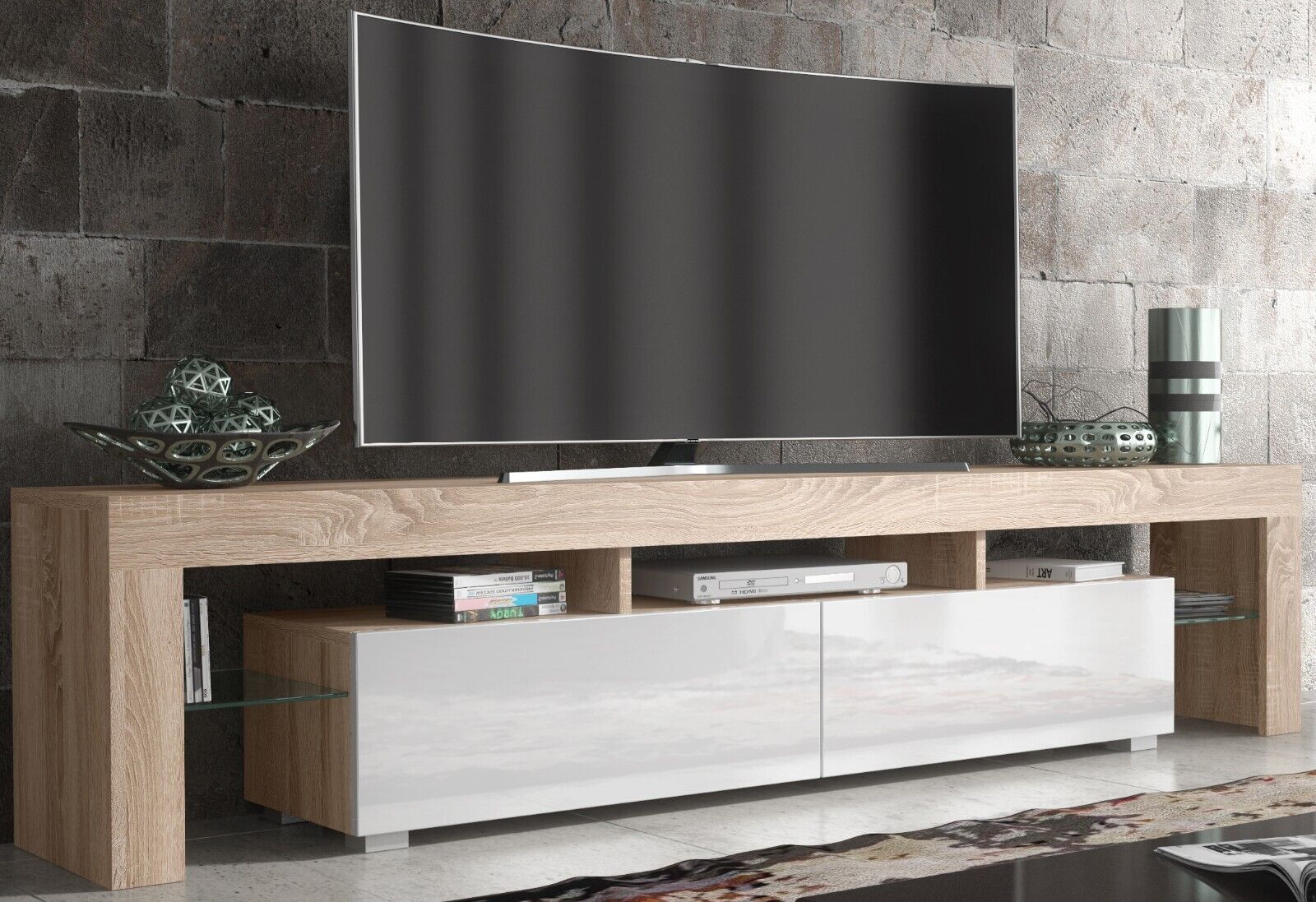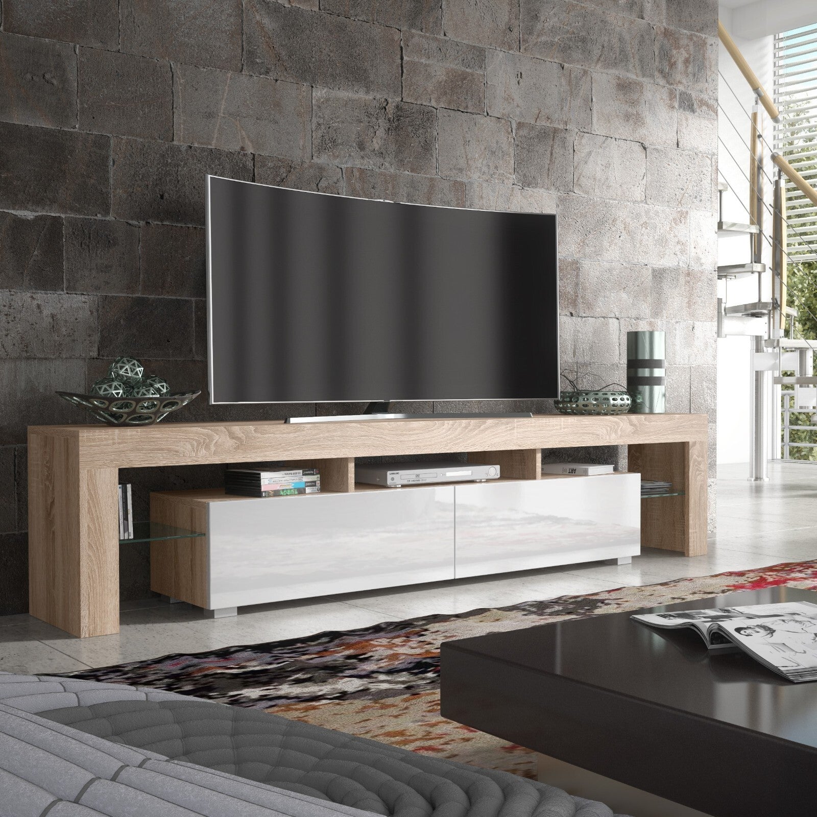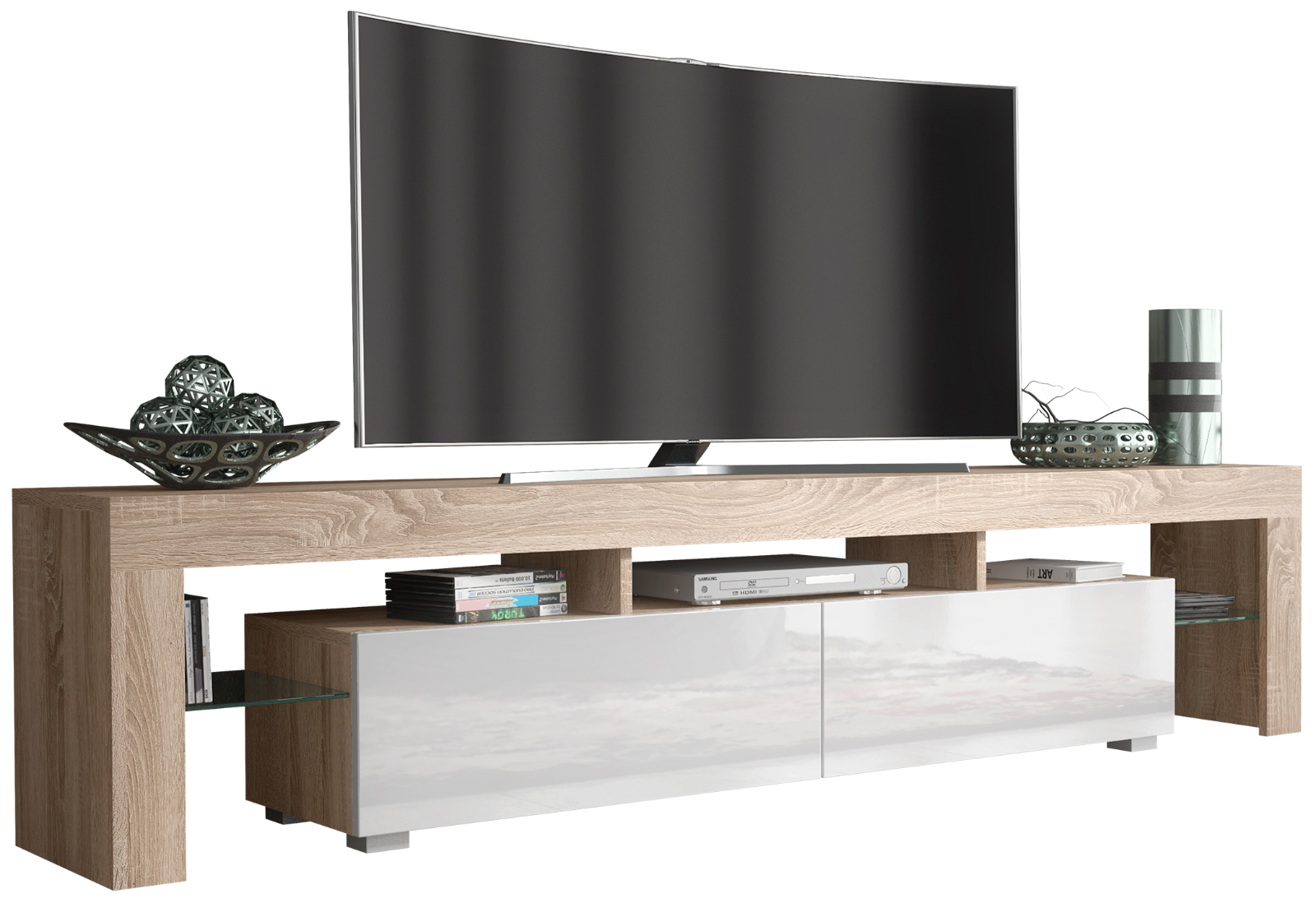200cm I Modern TV Unit I Cabinet with Storage I Oak I High Gloss White Doors