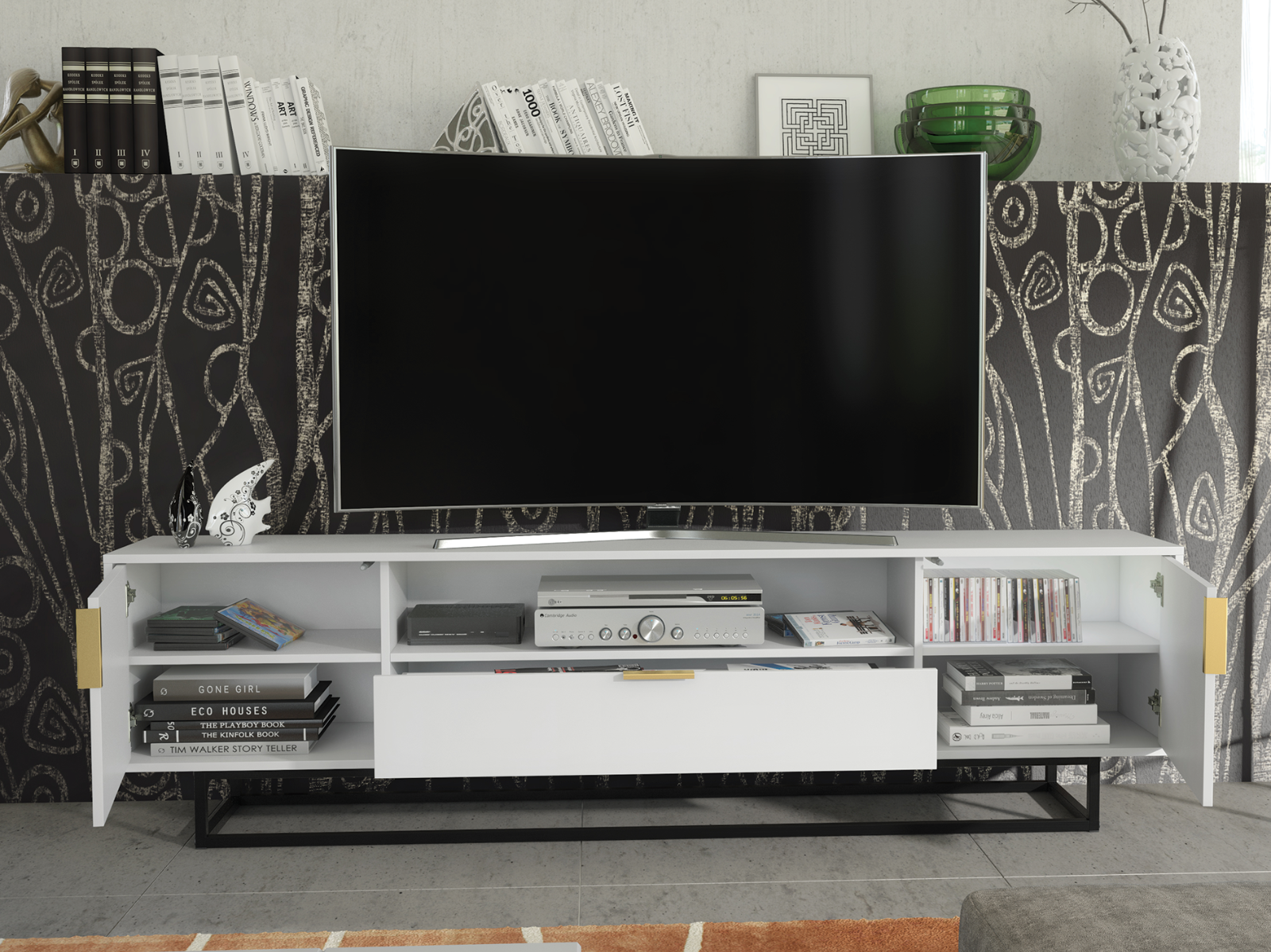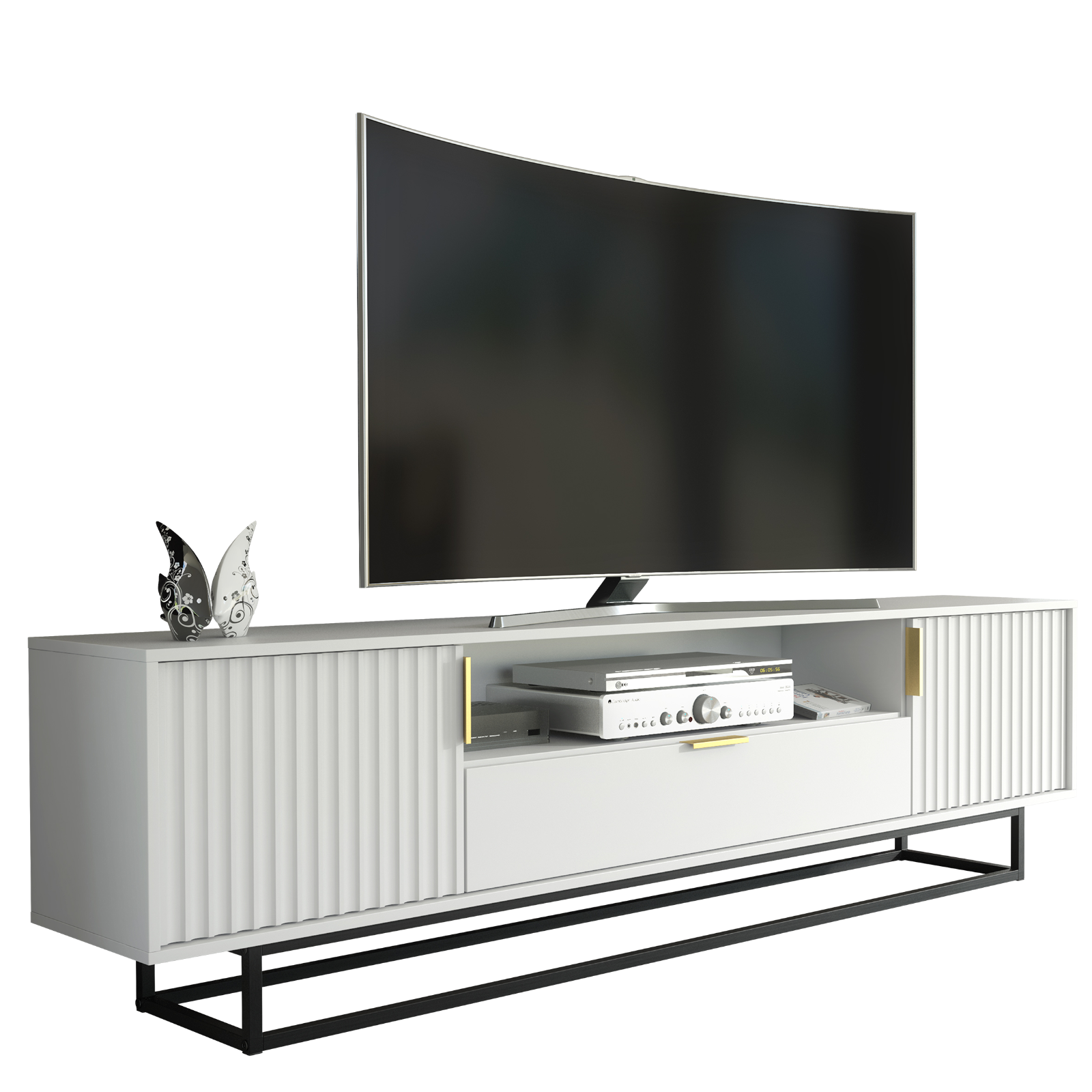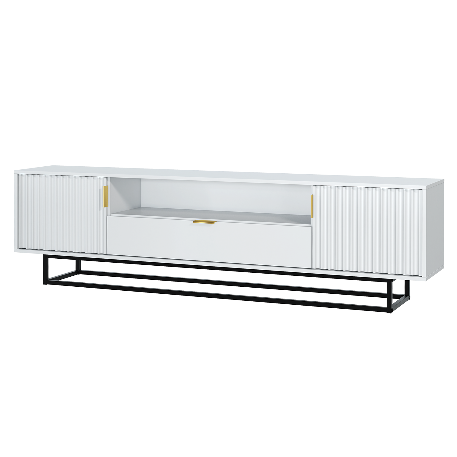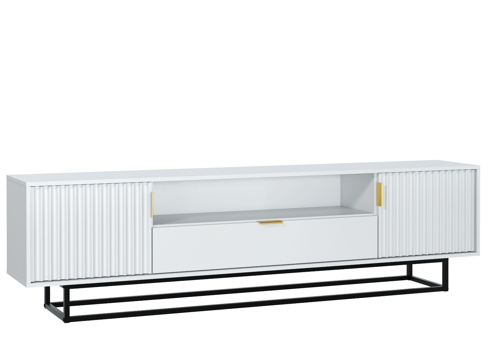 200cm Loft Retro TV Unit | Milled Fronts | White Vintage Cabinet Cupboard Stand