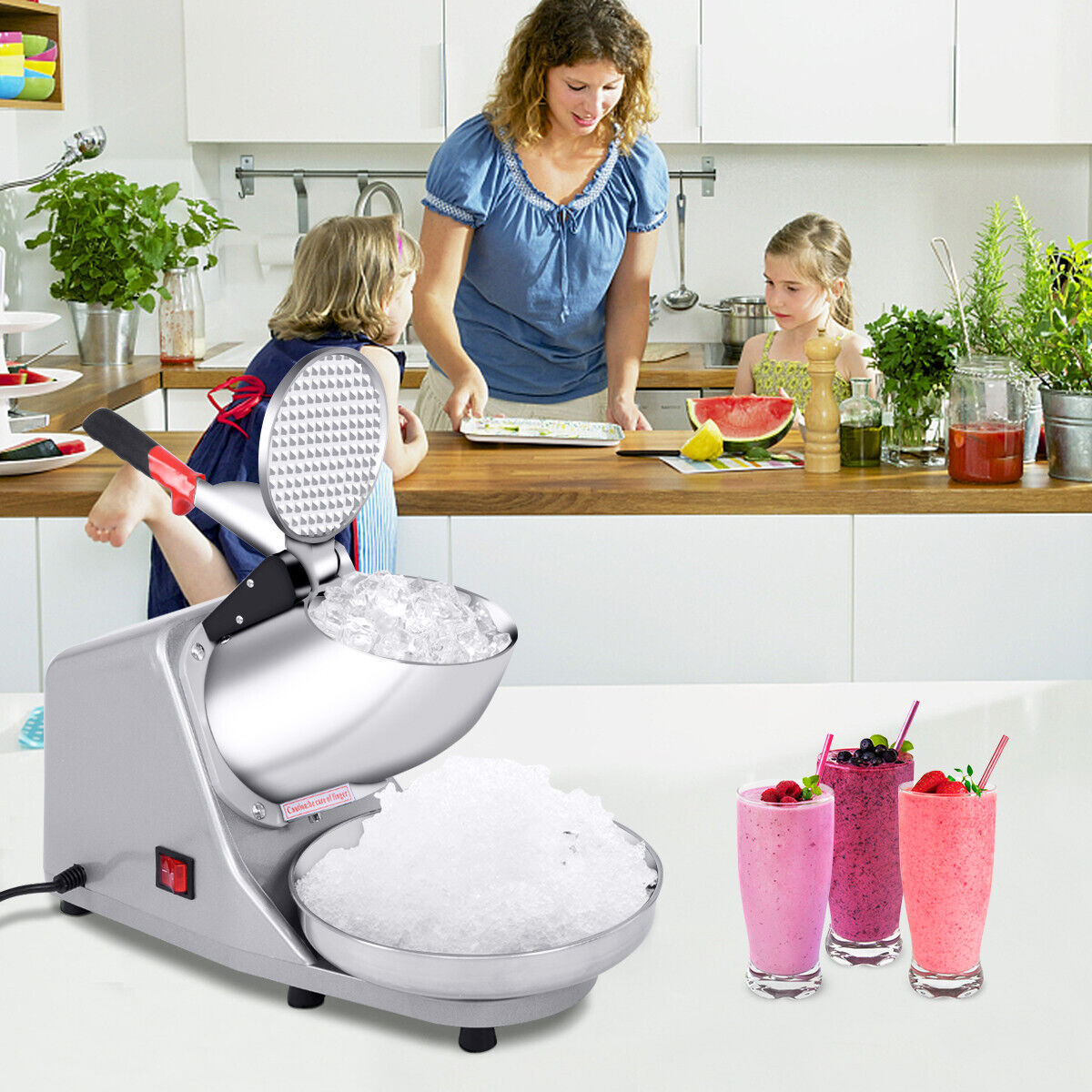 200W Portable Electric Ice Shaver Ice Crusher Machine Snow Cone Maker Silver