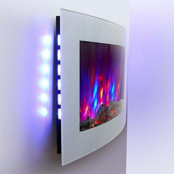 2025 TRUFLAME™ FLAME EFFECT LOG WHITE GLASS CURVED WALL MOUNTED ELECTRIC FIRE