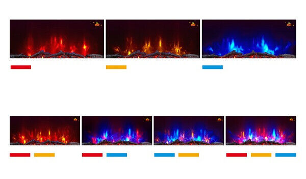 above is fine with 30cm+ gap), Adjustable Flame Colors, Adjustable Thermostat, Automatic Shut Off, Blower/Fan, Cool-to-Touch, LED Flames, On/Off