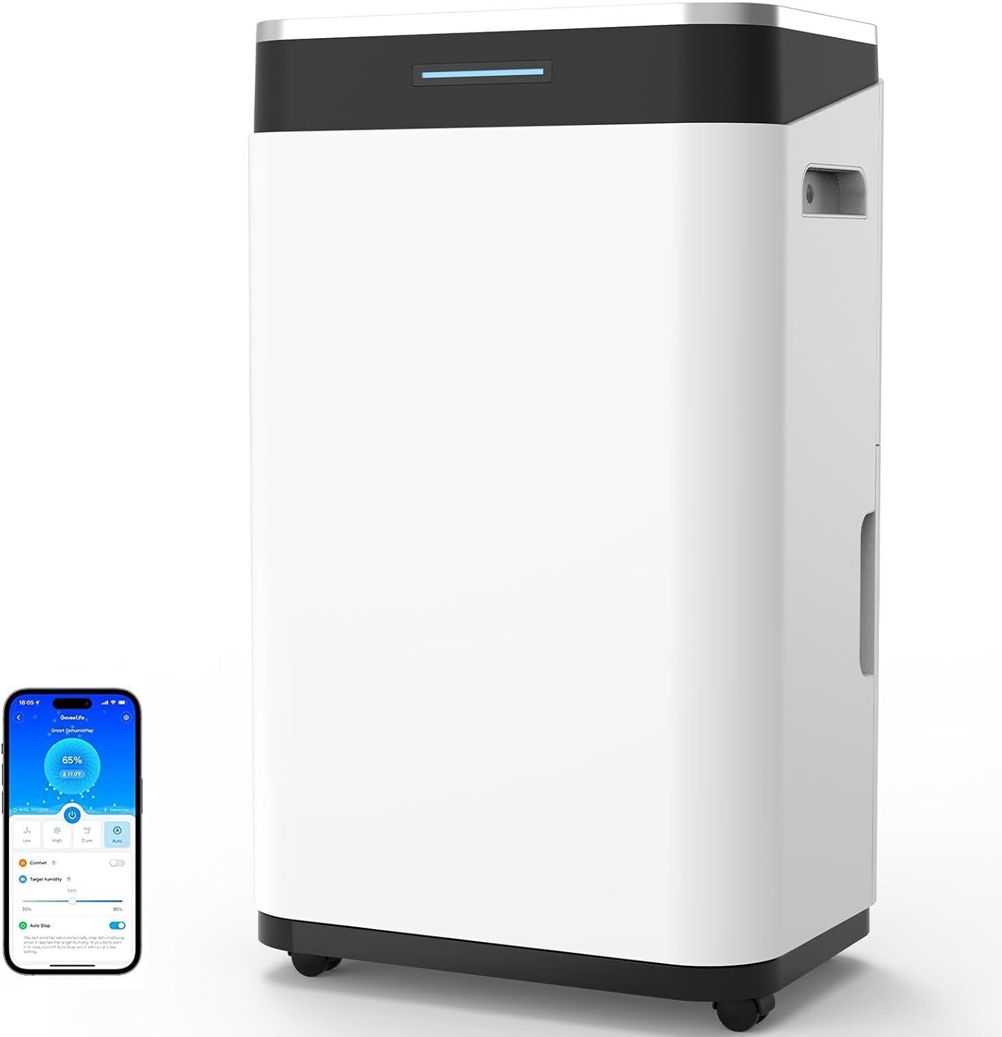 Carry Handle, Digital Display, Full Tank Indicator, LED Display, Removable Water Tank, Timer, Nighttime/Sleep Mode, Quiet Operation, Low Noise, Portable, WiFi, Humidity Monitor, Efficient Dehumidification, Auto Defrost, Child-lock