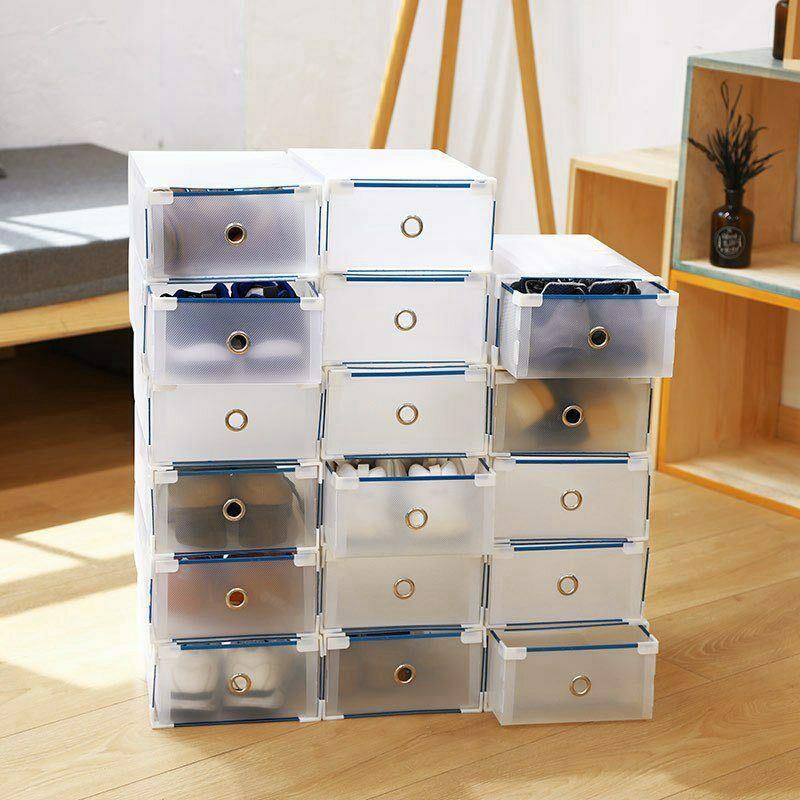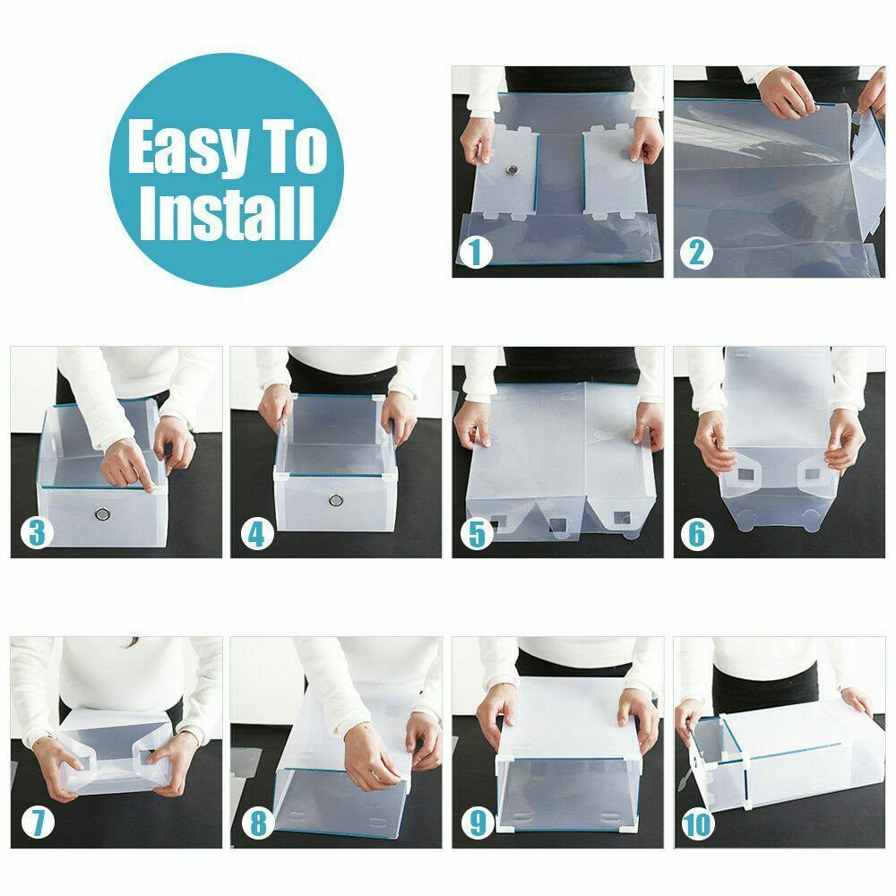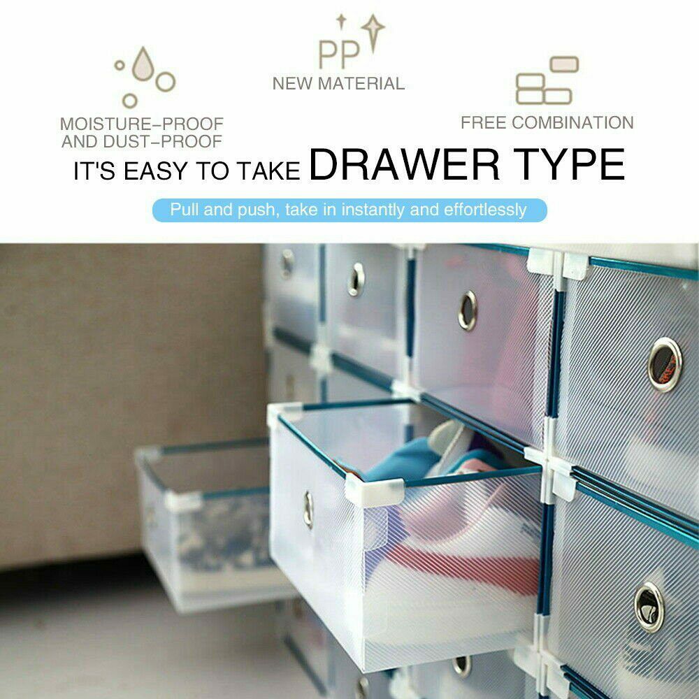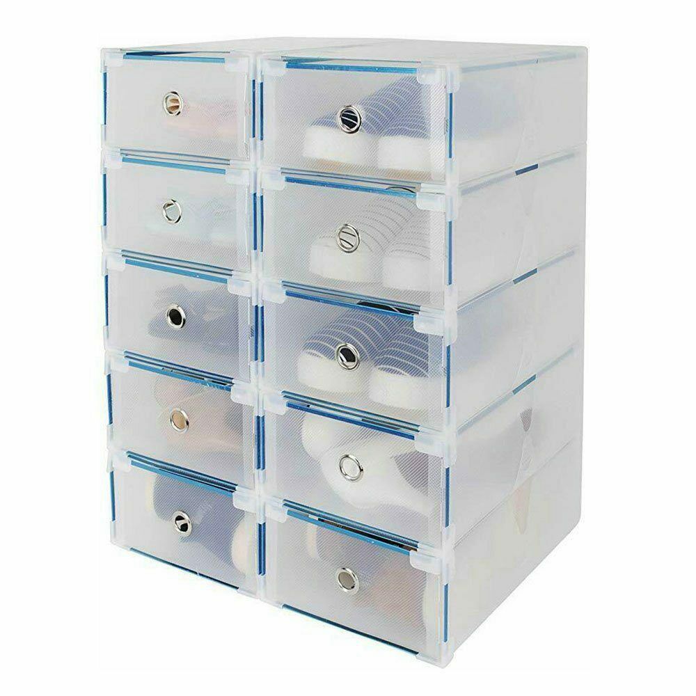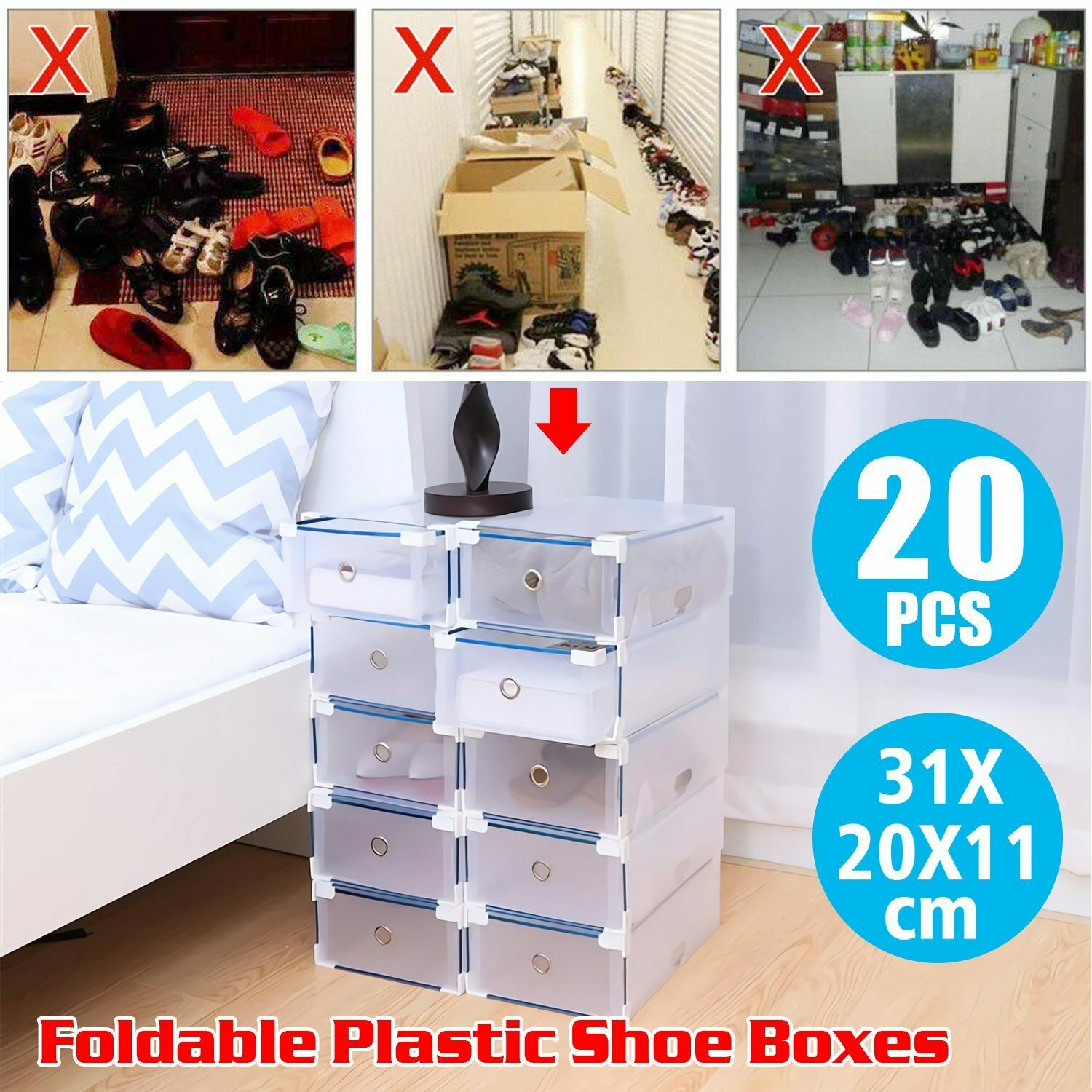 20x Clear Plastic Shoe Storage Boxes Drawer Stackable Foldable Durable Organiser