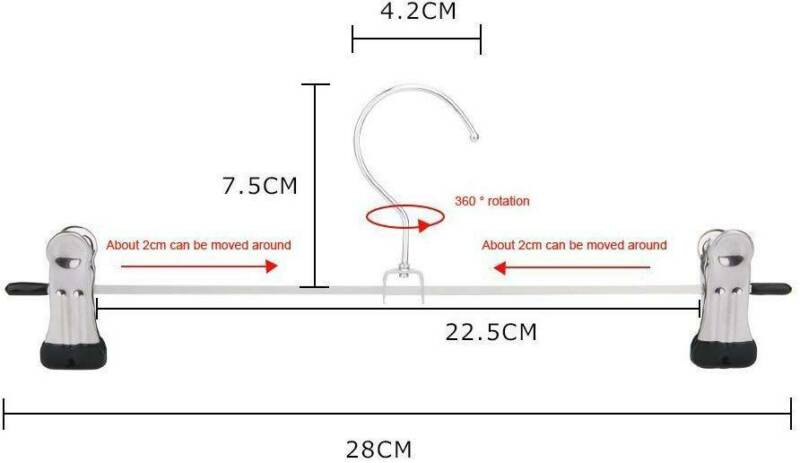 - Features: Adjustable Clips, Heavy Duty, Non-Slip, Notched, Space Saving, Travel Friendly, Trouser Bar