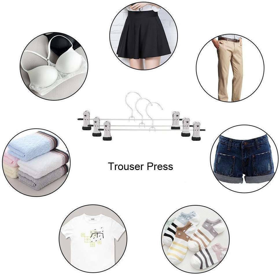 - Features: Adjustable Clips, Heavy Duty, Non-Slip, Notched, Space Saving, Travel Friendly, Trouser Bar