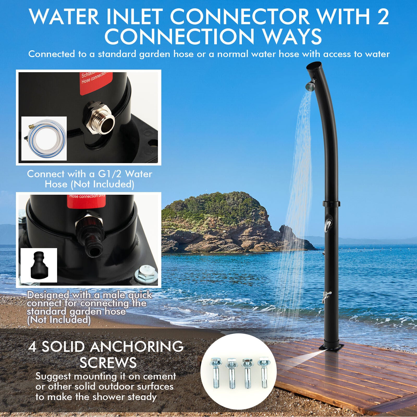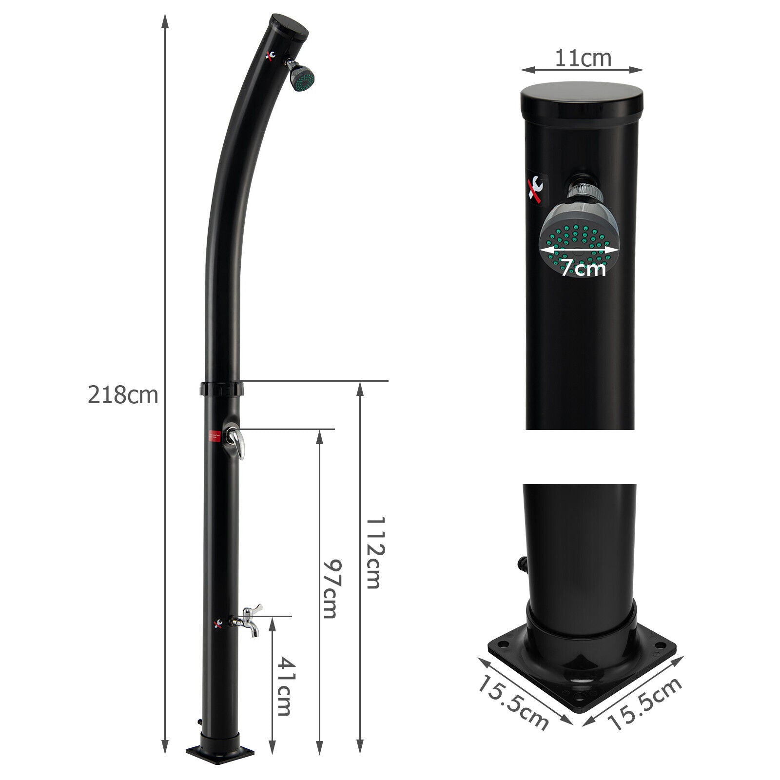 218CM Outdoor Solar-Heated Shower Adjustable Temperature Freestanding Shower