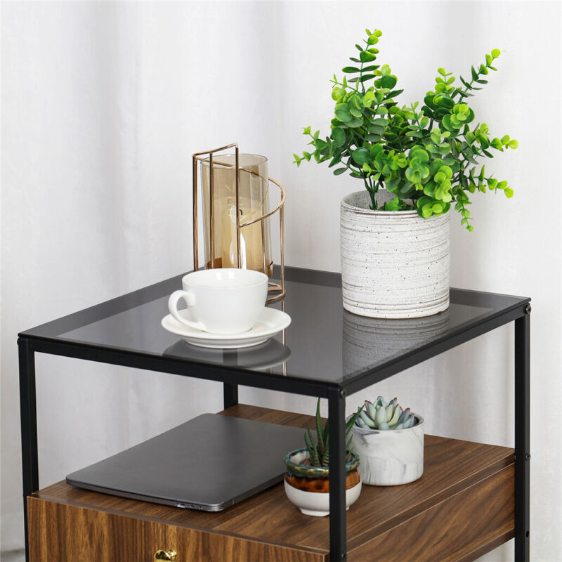 21Inch Accent Tempered Glass End Table Sofa Side Table Storage Raised Metal Legs