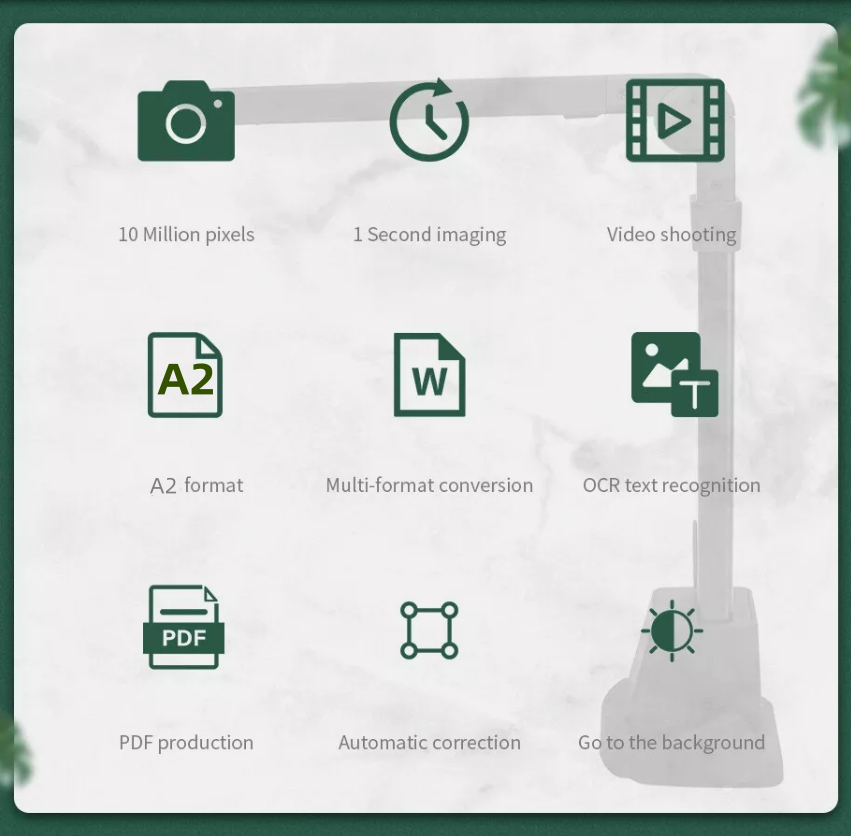 21MP Book & Document Scanner w/ OCR Auto-Flatten Deskew for Desktop/Laptop CMOS