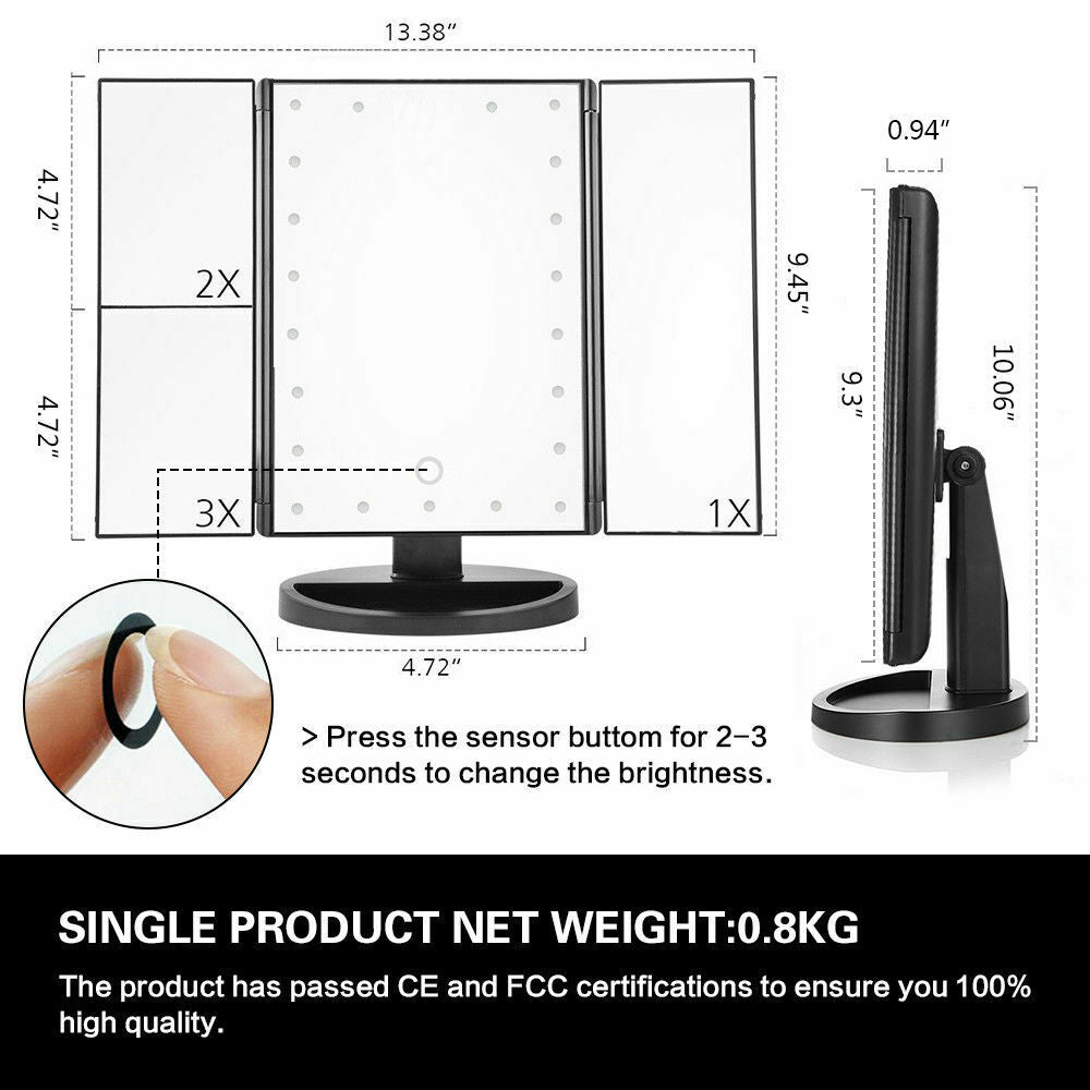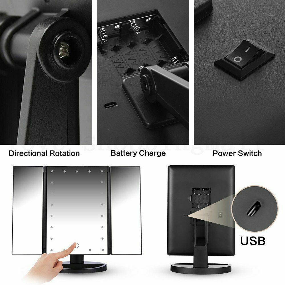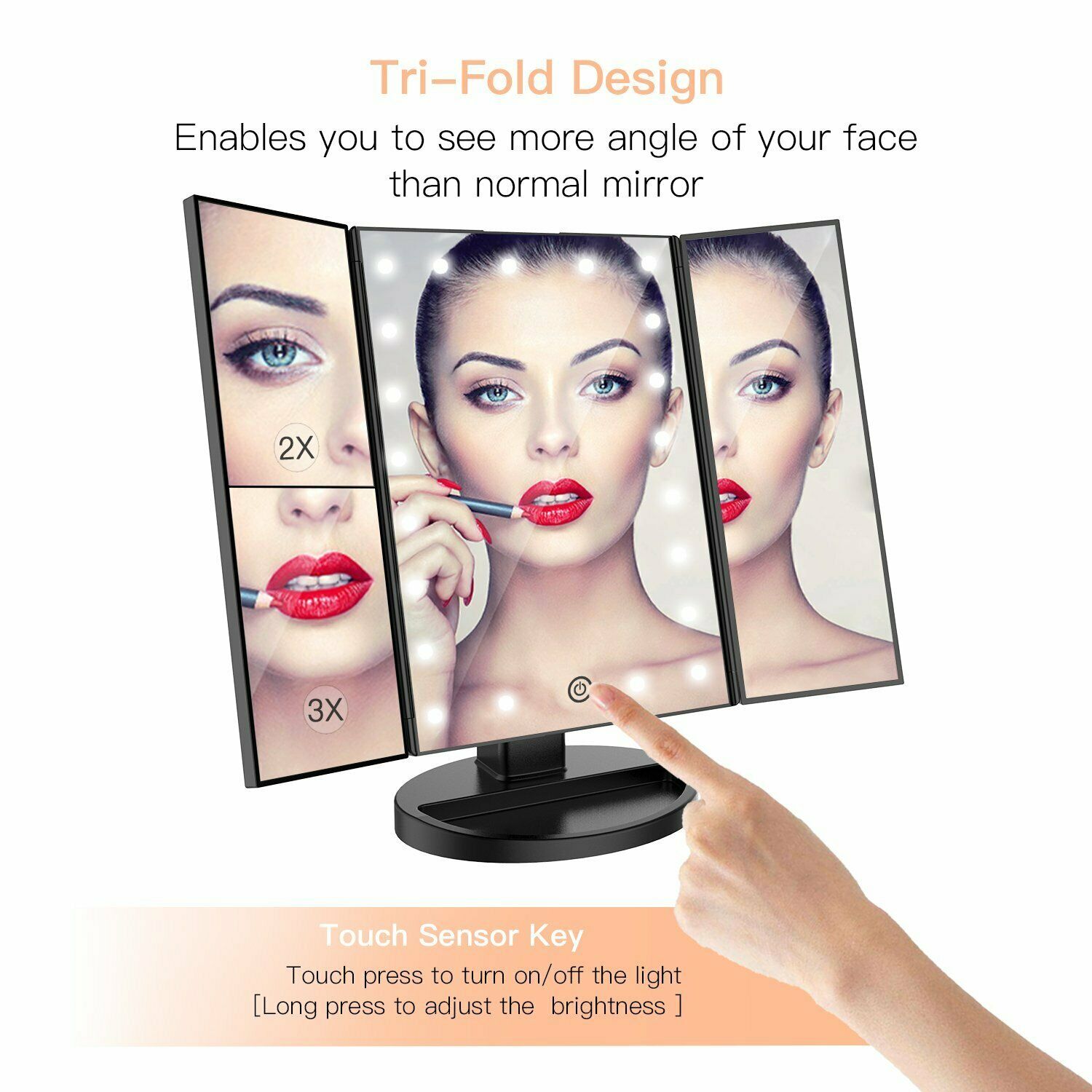 22 LED Tri Folding Touch Makeup Mirror Tabletop Cosmetic Vanity LED Light Mirror
