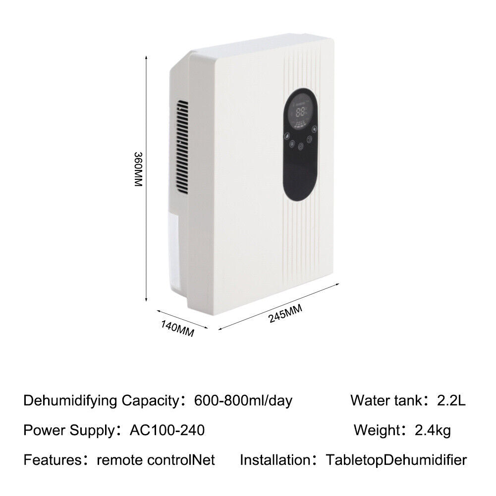 2200ml Portable Dehumidifier for Damp, Mould, Moisture in Home, Bedroom, Caravan