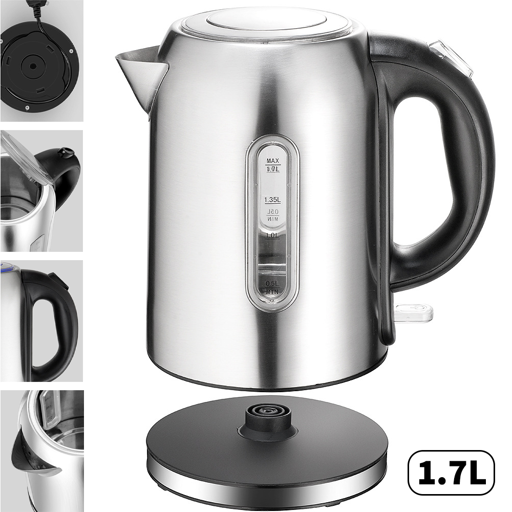2200W 1.7L Electric Kettle Quiet Fast Boil Stainless Steel Jug Overheat Protect