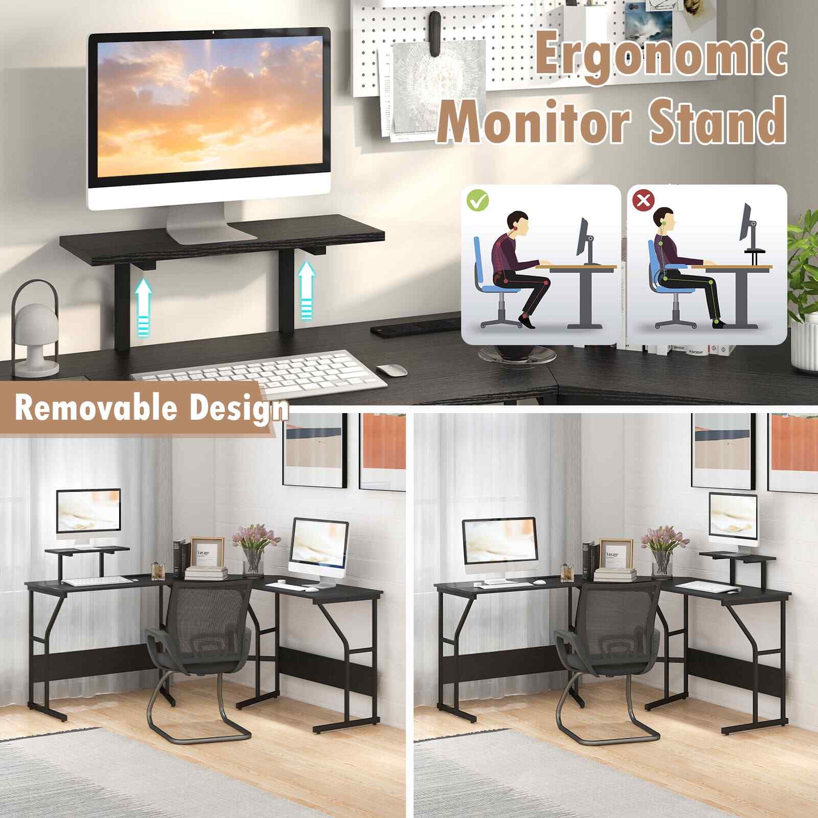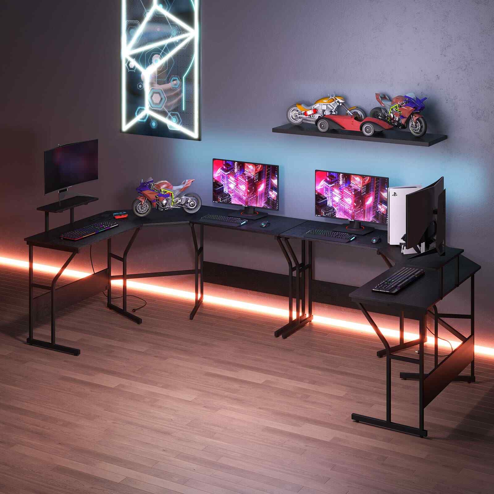 225cm Long 2-Person Corner Computer Workstation L-shaped Desk-Black