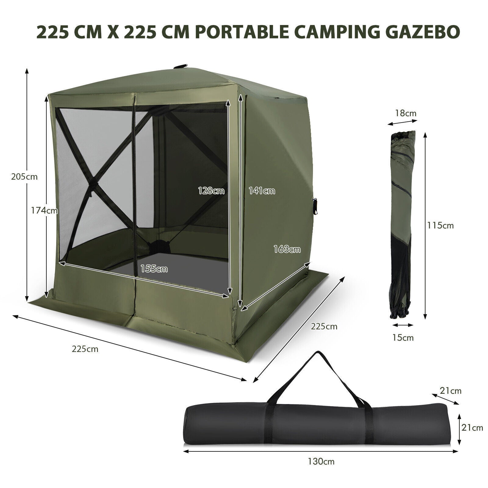 225x 225cm 4-Panel Pop up Camping Gazebo Instant Setup Screen House Gazebo Tent