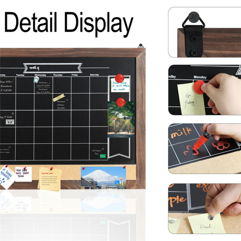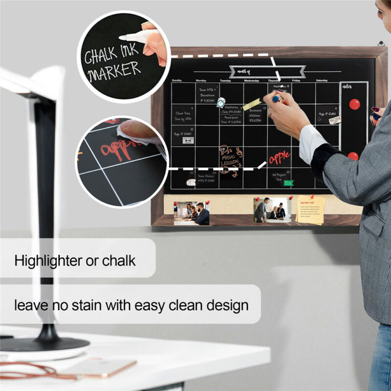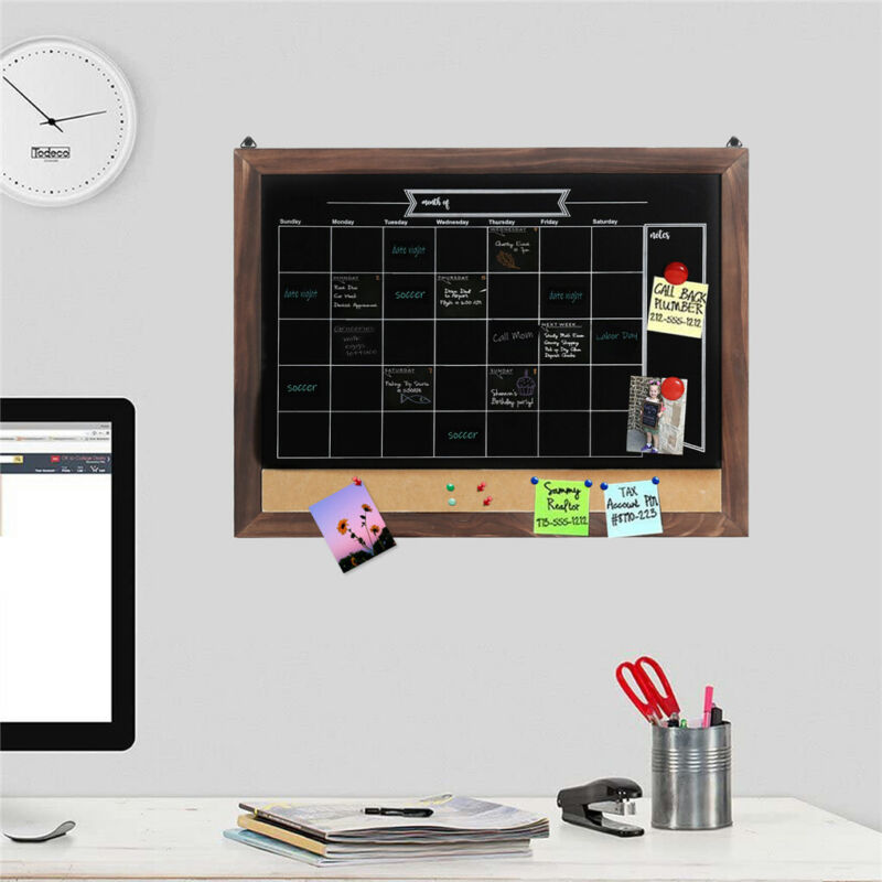 24" Rustic Frame Chalkboard Calendar & Bulletin Combo Board Magnetic Blackboard