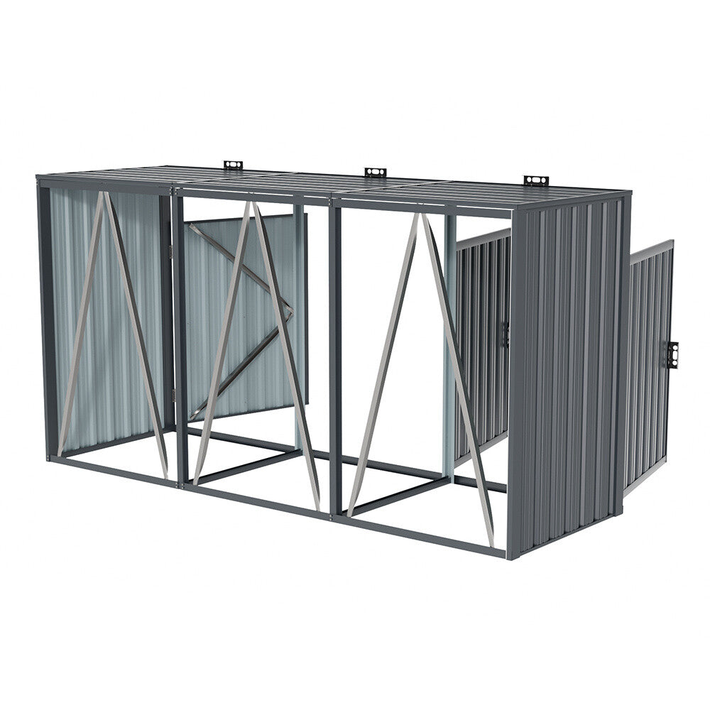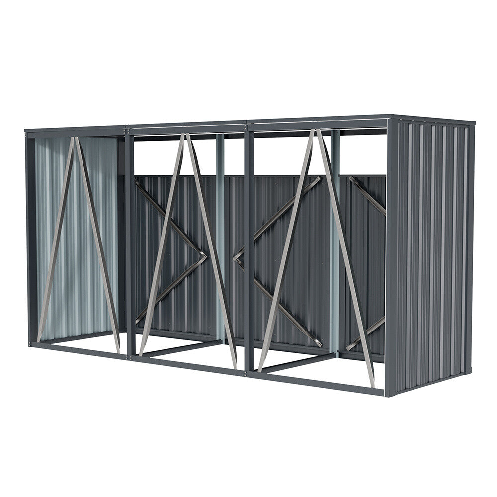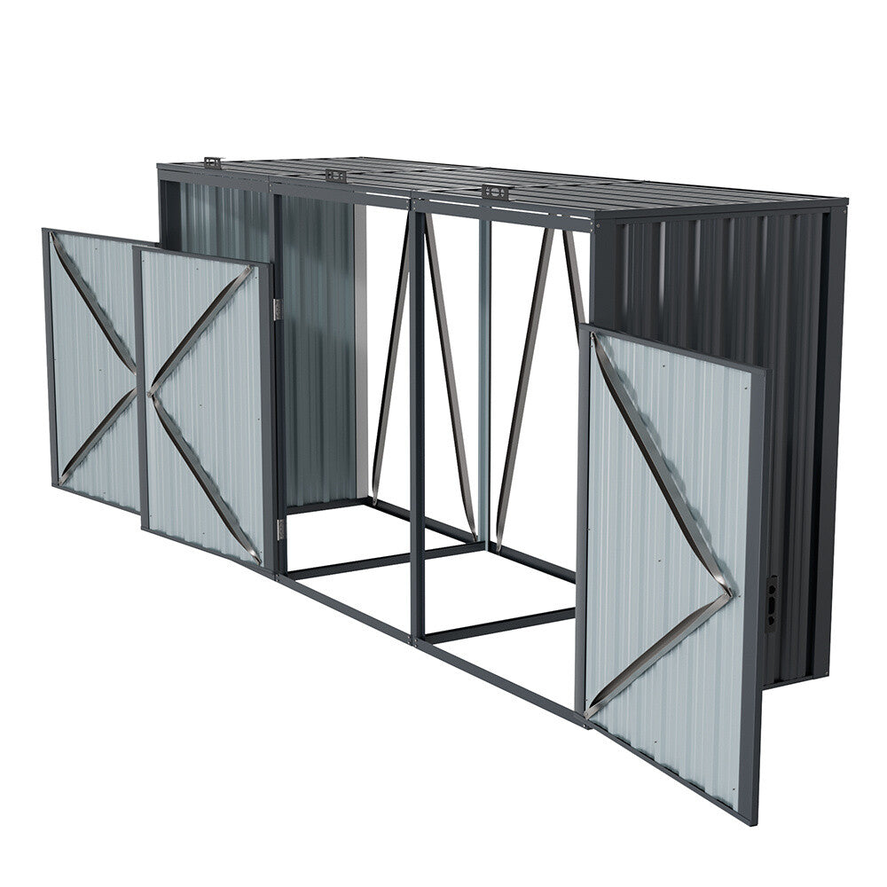 240cm Metal Bin Shed Triple Wheelie Bin Storage Cover Rubbish Dustbin Three Shed