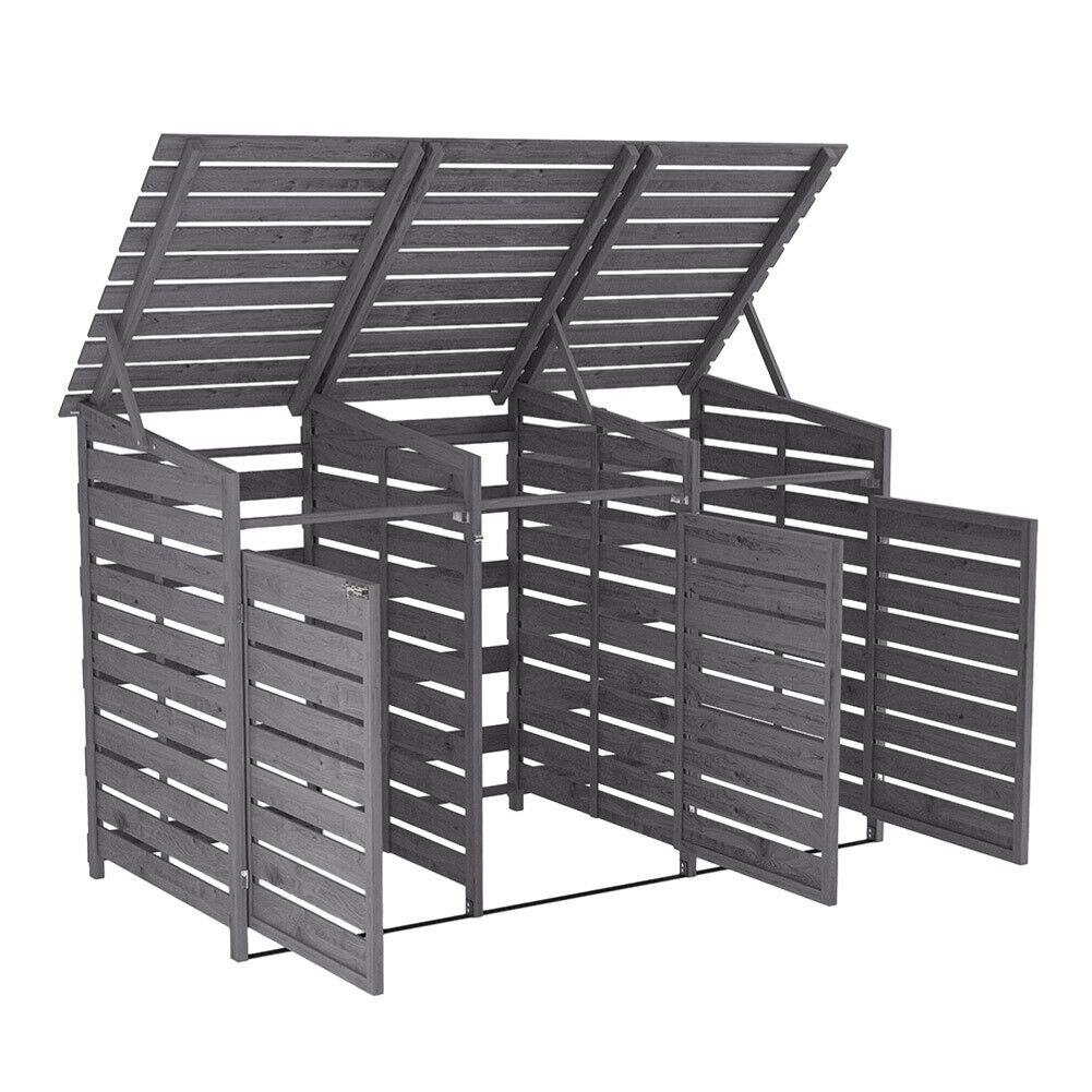 240L Triple Wheelie Bin Storage Wooden Store Cover Garden Rubbish Dustbin 3 Shed