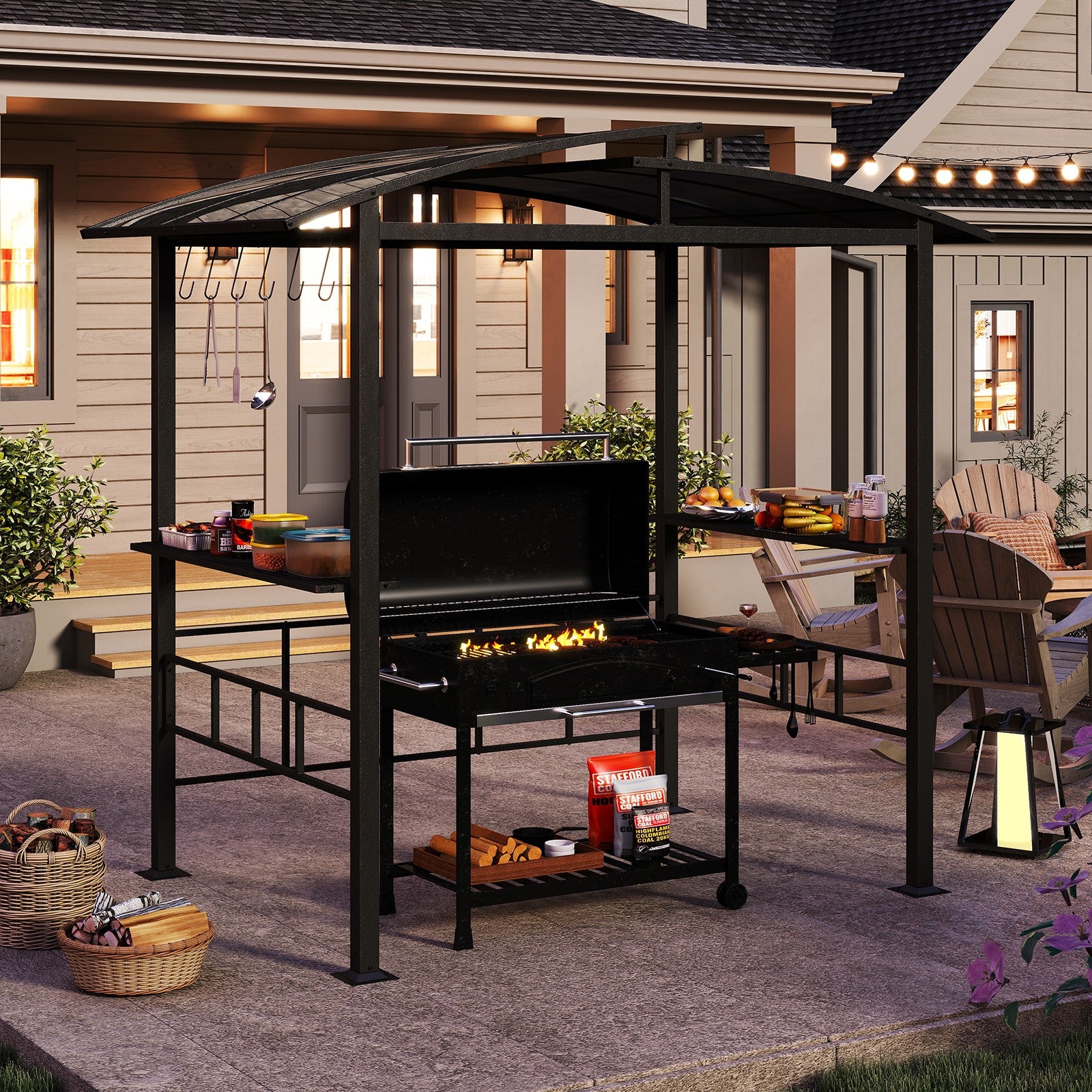 248 x 150 cm Patio Double-Tiered BBQ Canopy Tent-Black