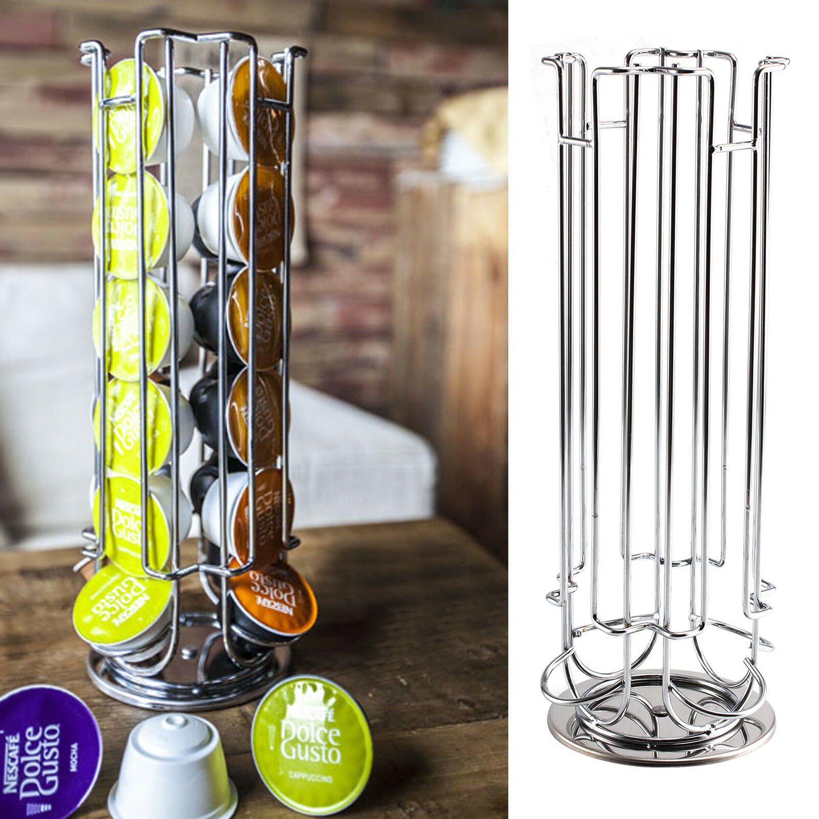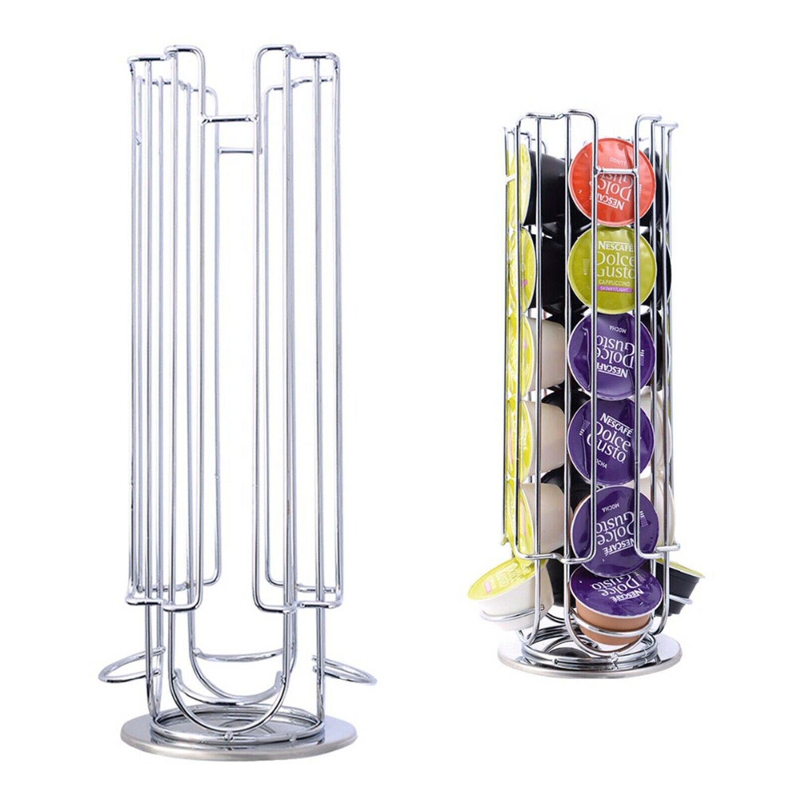 24pc Dolce Gusto Pod Holder Rotating Coffee Capsule Revolving Stand Chrome