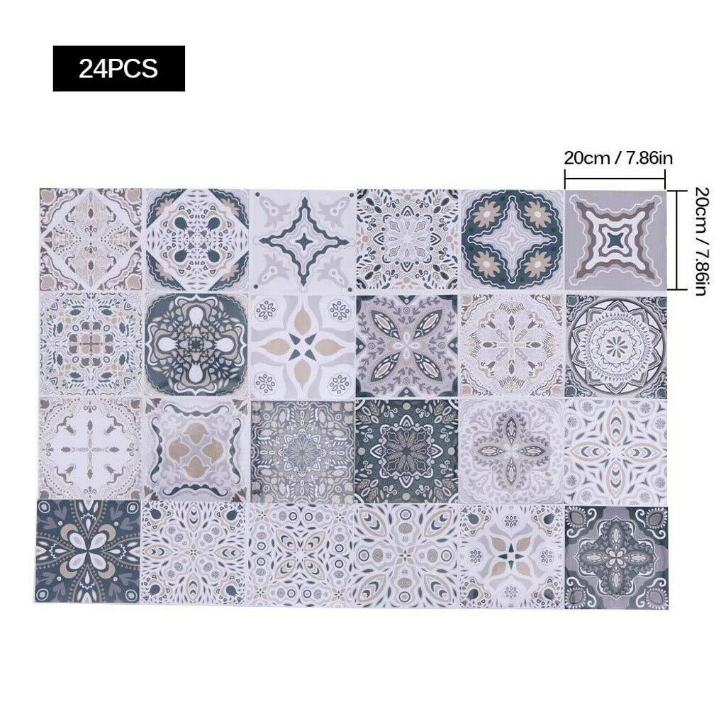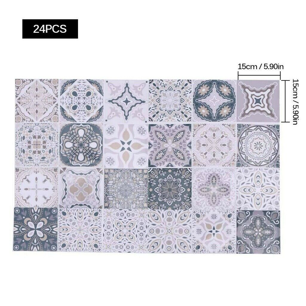 24PCS Mosaic Tile Stickers Moroccan Victorian Mosaic Transfers Covers Bathroom