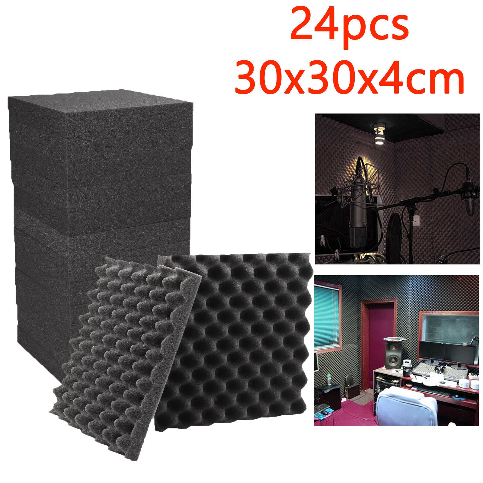 24X Acoustic Wall Panel Tiles Studio Sound Proofing Insulation Foam Pads 30x30cm