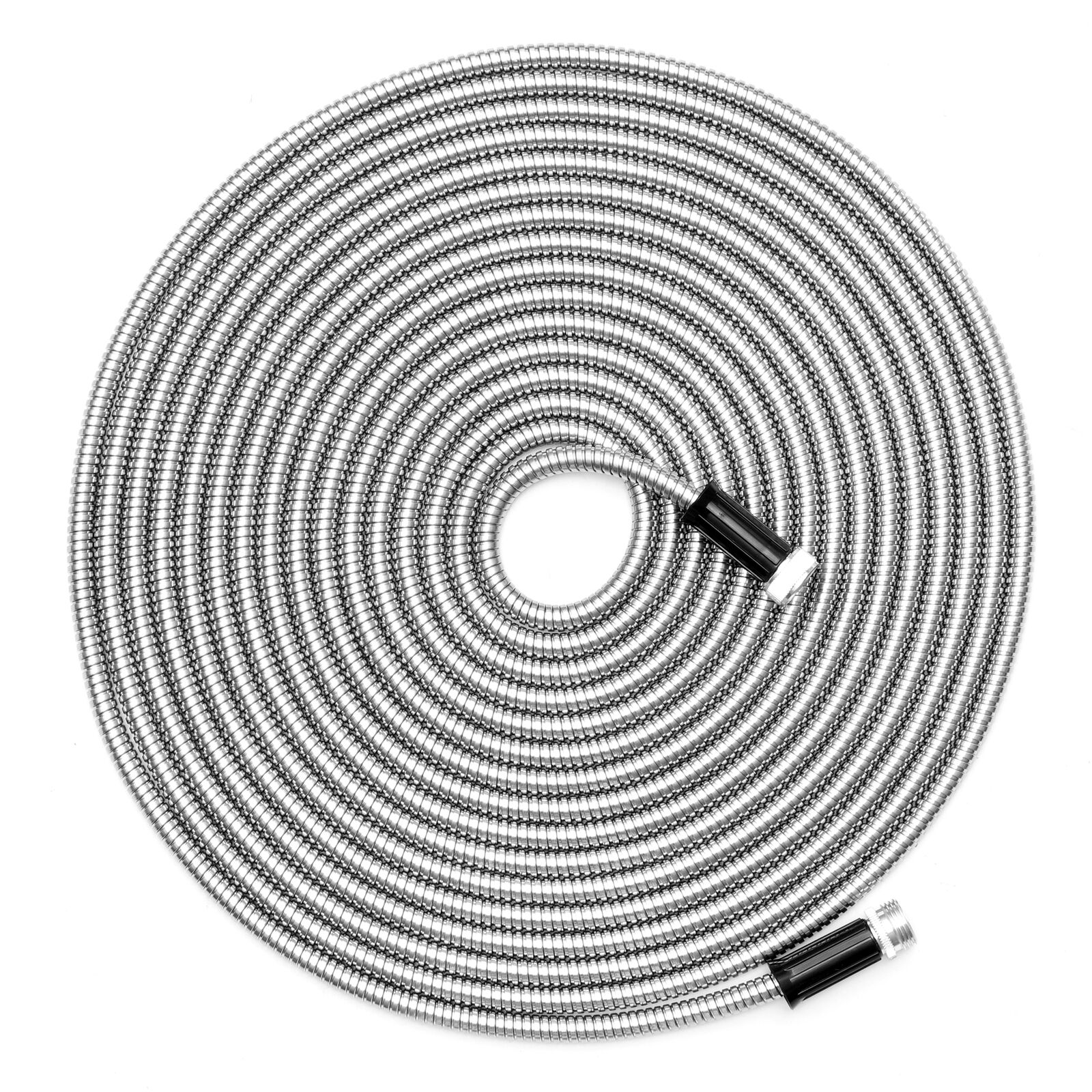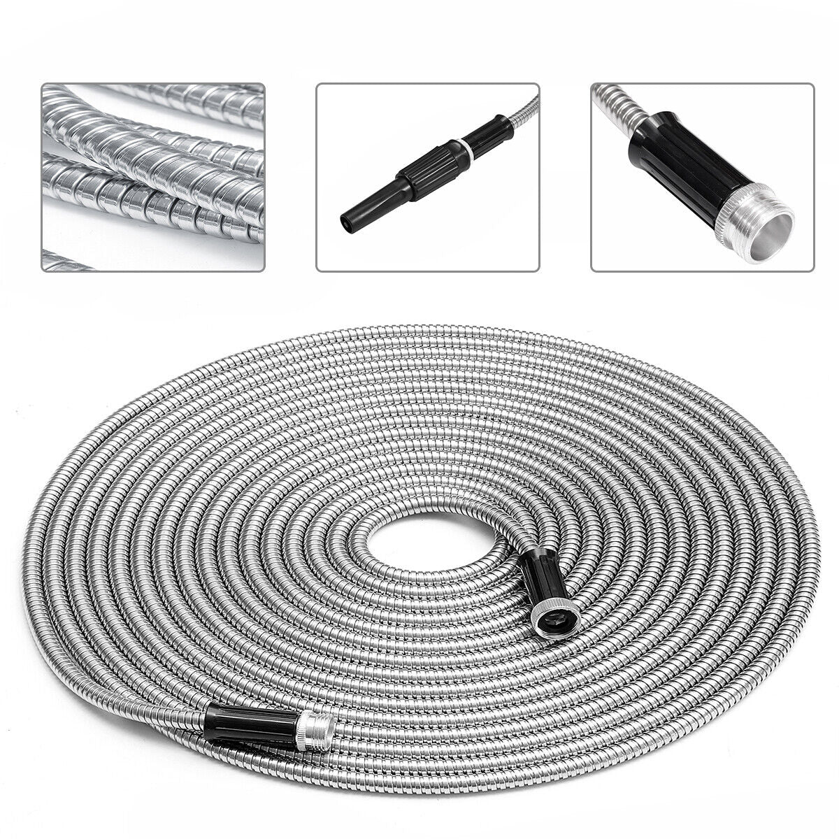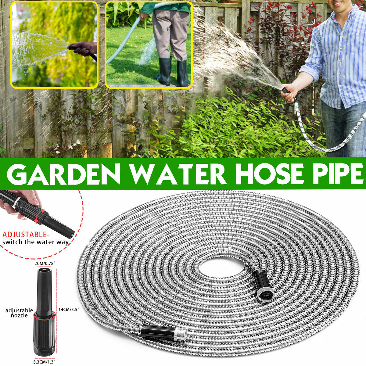 25-100ft Stainless Steel Garden Hose Flexible, Car Wash Water Pipe W/ Nozzle UK